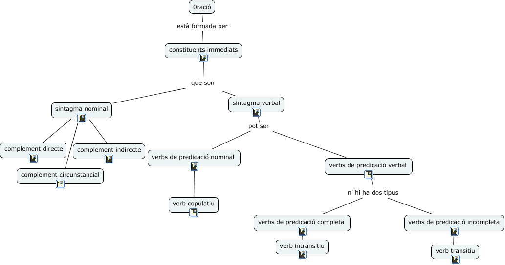 This Concept Map, created with IHMC CmapTools, has information related to: Sense títol 2, sintagma nominal ???? complement directe, constituents immediats que son sintagma verbal, sintagma nominal que son sintagma verbal, sintagma nominal ???? complement circunstancial, sintagma nominal ???? complement indirecte, verbs de predicació nominal ???? verb copulatiu, verbs de predicació incompleta ???? verb transitiu, sintagma verbal pot ser verbs de predicació verbal, verbs de predicació completa ???? verb intransitiu, verbs de predicació verbal n`hi ha dos tipus verbs de predicació incompleta, verbs de predicació verbal n`hi ha dos tipus verbs de predicació completa, sintagma verbal pot ser verbs de predicació nominal, 0ració està formada per constituents immediats