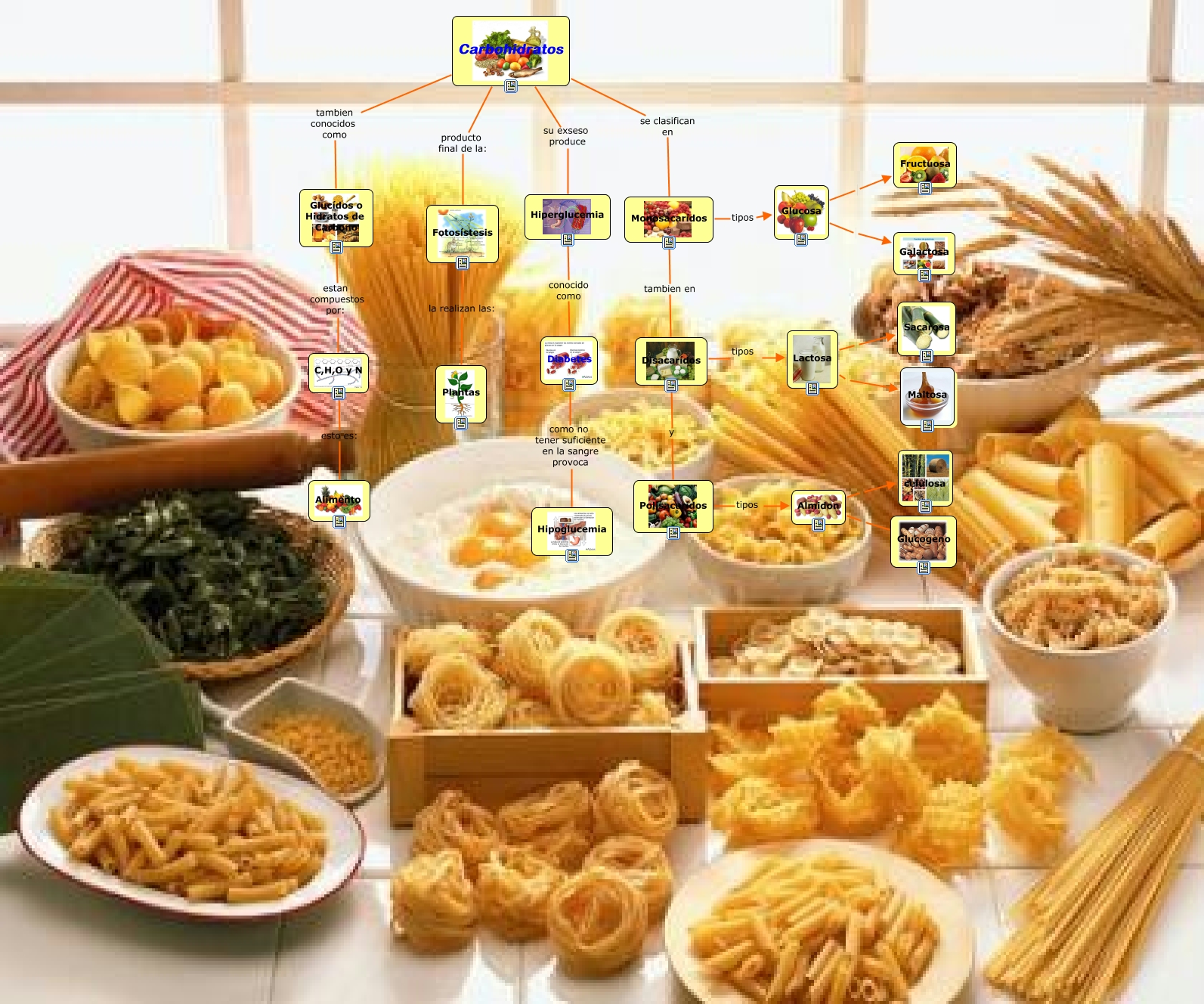 Este Cmap, tiene información relacionada con: carbohidratos, Fotosístesis la realizan las: Plantas, C,H,O y N esto es: Alimento, Diabetes como no tener suficiente en la sangre provoca Hipoglucemia, Hiperglucemia conocido como Diabetes, Disacarídos tipos Lactosa, Almidon Glucogeno, Monosacarídos tipos Glucosa, Monosacarídos tambien en Disacarídos, Lactosa Maltosa, Carbohidratos tambien conocidos como Glucídos o Hidratos de Carbono, Polisacarídos tipos Almidon, Disacarídos y Polisacarídos, Carbohidratos producto final de la: Fotosístesis, Glucosa Fructuosa, Glucídos o Hidratos de Carbono estan compuestos por: C,H,O y N, Carbohidratos su exseso produce Hiperglucemia, Lactosa Sacarosa, Almidon celulosa, Carbohidratos se clasifican en Monosacarídos, Glucosa Galactosa