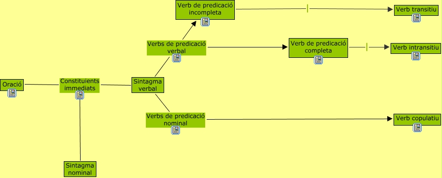 Aquest mapa conceptual conté informació relacionada amb: Oració, Verb de predicació completa Verb intransitiu, Oració Constituients immediats Sintagma nominal, Verb de predicació incompleta Verb transitiu, Sintagma verbal Constituients immediats Sintagma nominal, Sintagma verbal Verbs de predicació verbal Verb de predicació completa, Sintagma verbal Verbs de predicació nominal Verb copulatiu, Sintagma verbal Verbs de predicació verbal Verb de predicació incompleta
