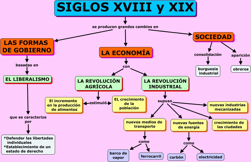 Este Cmap, tiene información relacionada con: siglos XVIII y XIX, nuevos medios de transporte como barco de vapor, SIGLOS XVIII y XIX se producen grandes cambios en SOCIEDAD, LA REVOLUCIÓN AGRÍCOLA estimuló El incremento en la producción de alimentos, nuevas fuentes de energía como carbón, LA REVOLUCIÓN INDUSTRIAL supuso nuevas industrias mecanizadas, LA REVOLUCIÓN INDUSTRIAL supuso nuevas fuentes de energía, LA ECONOMÍA con LA REVOLUCIÓN AGRÍCOLA, SIGLOS XVIII y XIX se producen grandes cambios en LAS FORMAS DE GOBIERNO, LA ECONOMÍA con LA REVOLUCIÓN INDUSTRIAL, SOCIEDAD aparición obreros, EL LIBERALISMO que se caracteriza por *Defender las libertades individuales *Establecimiento de un estado de derecho, SOCIEDAD consolidación burguesia industrial, LA REVOLUCIÓN INDUSTRIAL supuso crecimiento de las ciudades, SIGLOS XVIII y XIX se producen grandes cambios en LA ECONOMÍA, LA REVOLUCIÓN INDUSTRIAL supuso nuevos medios de transporte, nuevos medios de transporte como ferrocarril, LAS FORMAS DE GOBIERNO basadas en EL LIBERALISMO, nuevas fuentes de energía como electricidad, LA REVOLUCIÓN AGRÍCOLA estimuló EL crecimiento de la población