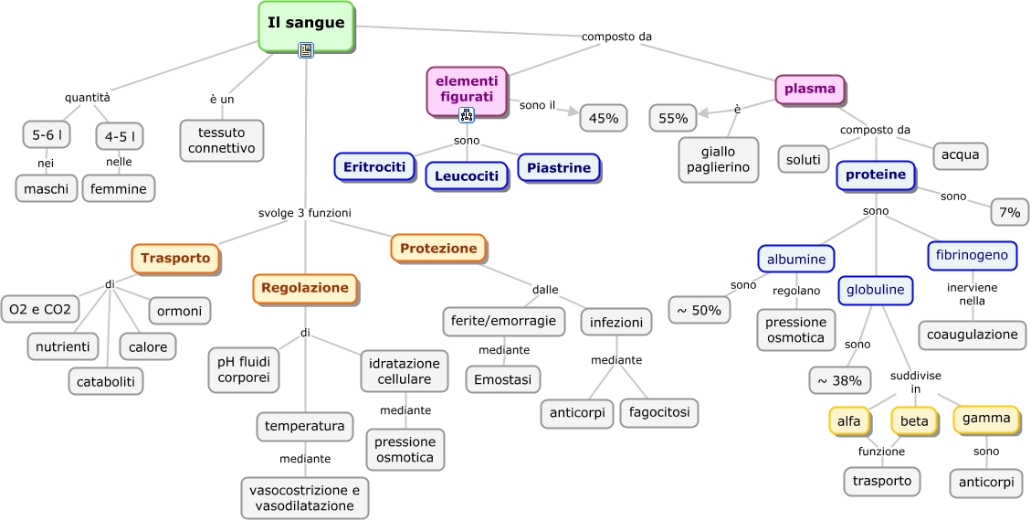 Questa Cmap, creata con IHMC CmapTools, contiene informazioni relative a: Sangue, plasma è 55%, Regolazione di idratazione cellulare, fibrinogeno inerviene nella coaugulazione, Regolazione di temperatura, Trasporto di ormoni, globuline suddivise in beta, Il sangue è un tessuto connettivo, Trasporto di O2 e CO2, plasma composto da acqua, Trasporto di cataboliti, proteine sono fibrinogeno, 5-6 l nei maschi, globuline sono ~ 38%, globuline suddivise in gamma, proteine sono albumine, plasma è giallo paglierino, Trasporto di calore, albumine regolano pressione osmotica, infezioni mediante fagocitosi, globuline suddivise in alfa