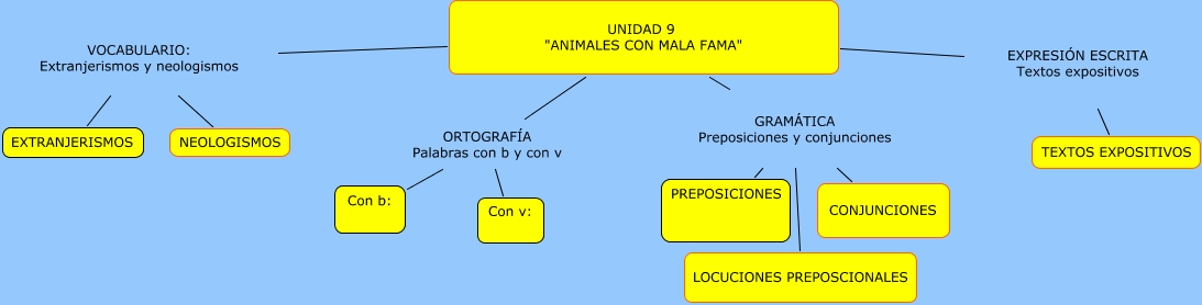 Este Cmap, tiene información relacionada con: UNIDAD 9 LENGUA 1112, UNIDAD 9 "ANIMALES CON MALA FAMA" VOCABULARIO: Extranjerismos y neologismos EXTRANJERISMOS, UNIDAD 9 "ANIMALES CON MALA FAMA" ORTOGRAFÍA Palabras con b y con v Con b:, UNIDAD 9 "ANIMALES CON MALA FAMA" GRAMÁTICA Preposiciones y conjunciones LOCUCIONES PREPOSCIONALES, UNIDAD 9 "ANIMALES CON MALA FAMA" GRAMÁTICA Preposiciones y conjunciones CONJUNCIONES, UNIDAD 9 "ANIMALES CON MALA FAMA" GRAMÁTICA Preposiciones y conjunciones PREPOSICIONES, UNIDAD 9 "ANIMALES CON MALA FAMA" ORTOGRAFÍA Palabras con b y con v Con v:, UNIDAD 9 "ANIMALES CON MALA FAMA" VOCABULARIO: Extranjerismos y neologismos NEOLOGISMOS, UNIDAD 9 "ANIMALES CON MALA FAMA" EXPRESIÓN ESCRITA Textos expositivos TEXTOS EXPOSITIVOS