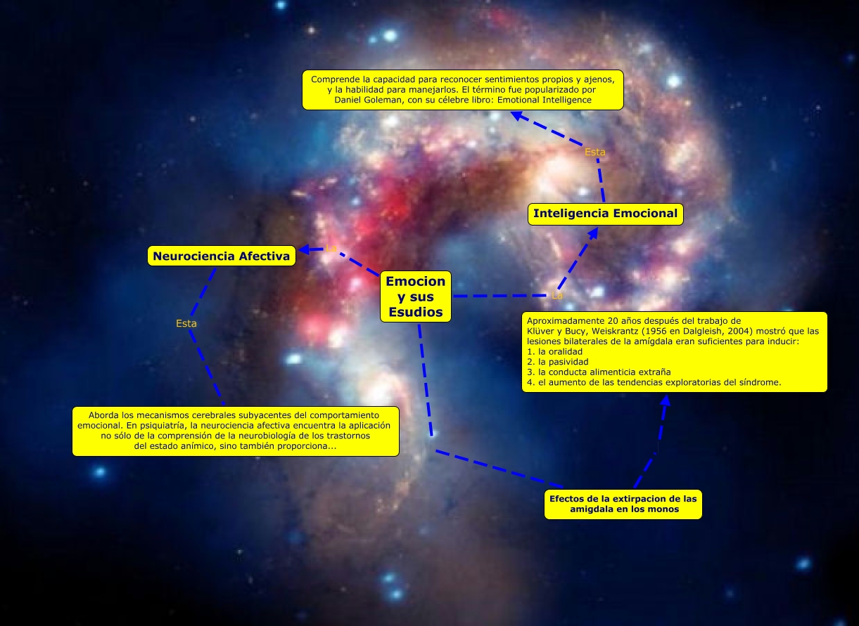 Este Cmap, tiene información relacionada con: Victor, Inteligencia Emocional Esta Comprende la capacidad para reconocer sentimientos propios y ajenos, y la habilidad para manejarlos. El término fue popularizado por Daniel Goleman, con su célebre libro: Emotional Intelligence, Efectos de la extirpacion de las amigdala en los monos Aproximadamente 20 años después del trabajo de Klüver y Bucy, Weiskrantz (1956 en Dalgleish, 2004) mostró que las lesiones bilaterales de la amígdala eran suficientes para inducir: 1. la oralidad 2. la pasividad 3. la conducta alimenticia extraña 4. el aumento de las tendencias exploratorias del síndrome., Emocion y sus Esudios La Inteligencia Emocional, Emocion y sus Esudios Efectos de la extirpacion de las amigdala en los monos, Emocion y sus Esudios La Neurociencia Afectiva, Neurociencia Afectiva Esta Aborda los mecanismos cerebrales subyacentes del comportamiento emocional. En psiquiatría, la neurociencia afectiva encuentra la aplicación no sólo de la comprensión de la neurobiología de los trastornos del estado anímico, sino también proporciona...