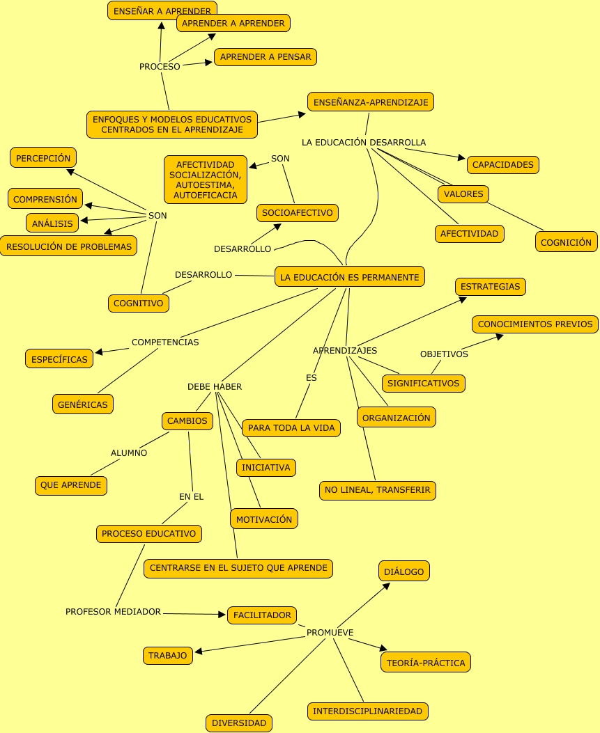 Este Cmap, tiene información relacionada con: tema 2, FACILITADOR PROMUEVE TEORÍA-PRÁCTICA, FACILITADOR PROMUEVE TRABAJO, LA EDUCACIÓN ES PERMANENTE APRENDIZAJES ESTRATEGIAS, LA EDUCACIÓN ES PERMANENTE DEBE HABER CENTRARSE EN EL SUJETO QUE APRENDE, LA EDUCACIÓN ES PERMANENTE DEBE HABER MOTIVACIÓN, ENSEÑANZA-APRENDIZAJE LA EDUCACIÓN DESARROLLA VALORES, LA EDUCACIÓN ES PERMANENTE APRENDIZAJES NO LINEAL, TRANSFERIR, COGNITIVO SON PERCEPCIÓN, FACILITADOR PROMUEVE DIVERSIDAD, SIGNIFICATIVOS OBJETIVOS CONOCIMIENTOS PREVIOS, ENFOQUES Y MODELOS EDUCATIVOS CENTRADOS EN EL APRENDIZAJE PROCESO APRENDER A PENSAR, LA EDUCACIÓN ES PERMANENTE COMPETENCIAS ESPECÍFICAS, ENSEÑANZA-APRENDIZAJE LA EDUCACIÓN DESARROLLA CAPACIDADES, LA EDUCACIÓN ES PERMANENTE DEBE HABER INICIATIVA, SOCIOAFECTIVO SON AFECTIVIDAD SOCIALIZACIÓN, AUTOESTIMA, AUTOEFICACIA, FACILITADOR PROMUEVE DIÁLOGO, ENSEÑANZA-APRENDIZAJE LA EDUCACIÓN DESARROLLA AFECTIVIDAD, COGNITIVO SON RESOLUCIÓN DE PROBLEMAS, CAMBIOS ALUMNO QUE APRENDE, LA EDUCACIÓN ES PERMANENTE DESARROLLO COGNITIVO