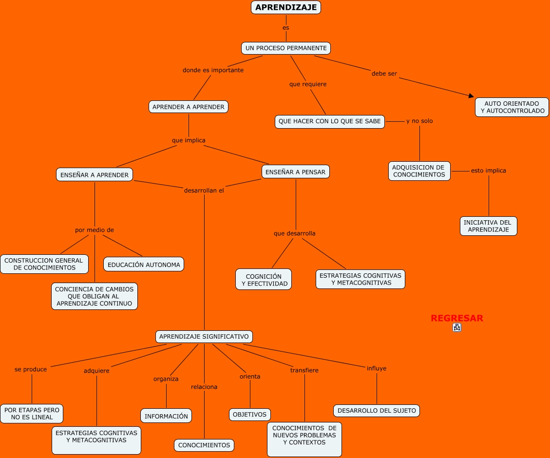 Este Cmap, tiene información relacionada con: APRENDIZAJE 1, ENSEÑAR A PENSAR desarrollan el APRENDIZAJE SIGNIFICATIVO, APRENDIZAJE SIGNIFICATIVO orienta OBJETIVOS, APRENDIZAJE SIGNIFICATIVO influye DESARROLLO DEL SUJETO, APRENDIZAJE es UN PROCESO PERMANENTE, ENSEÑAR A APRENDER desarrollan el APRENDIZAJE SIGNIFICATIVO, ENSEÑAR A APRENDER por medio de CONSTRUCCION GENERAL DE CONOCIMIENTOS, APRENDIZAJE SIGNIFICATIVO organiza INFORMACIÓN, ENSEÑAR A APRENDER por medio de CONCIENCIA DE CAMBIOS QUE OBLIGAN AL APRENDIZAJE CONTINUO, ENSEÑAR A PENSAR que desarrolla ESTRATEGIAS COGNITIVAS Y METACOGNITIVAS, QUE HACER CON LO QUE SE SABE y no solo ADQUISICION DE CONOCIMIENTOS, UN PROCESO PERMANENTE donde es importante APRENDER A APRENDER, UN PROCESO PERMANENTE que requiere QUE HACER CON LO QUE SE SABE, APRENDIZAJE SIGNIFICATIVO se produce POR ETAPAS PERO NO ES LINEAL, UN PROCESO PERMANENTE debe ser AUTO ORIENTADO Y AUTOCONTROLADO, APRENDIZAJE SIGNIFICATIVO relaciona CONOCIMIENTOS, ENSEÑAR A PENSAR que desarrolla COGNICIÓN Y EFECTIVIDAD, APRENDER A APRENDER que implica ENSEÑAR A APRENDER, APRENDIZAJE SIGNIFICATIVO adquiere ESTRATEGIAS COGNITIVAS Y METACOGNITIVAS, ADQUISICION DE CONOCIMIENTOS esto implica INICIATIVA DEL APRENDIZAJE, ENSEÑAR A PENSAR que implica ENSEÑAR A APRENDER