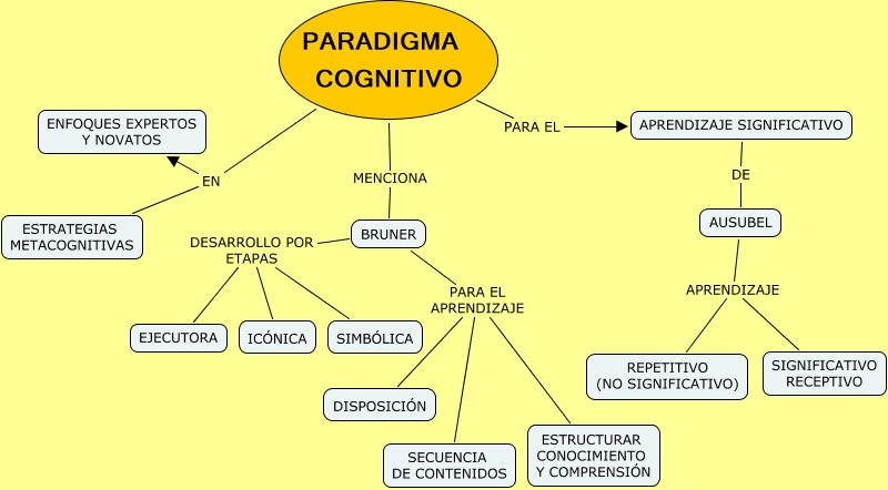 Este Cmap, tiene información relacionada con: A2, APRENDIZAJE SIGNIFICATIVO DE AUSUBEL, BRUNER PARA EL APRENDIZAJE DISPOSICIÓN, PARADIGMA COGNITIVO PARA EL APRENDIZAJE SIGNIFICATIVO, PARADIGMA COGNITIVO EN ENFOQUES EXPERTOS Y NOVATOS, AUSUBEL APRENDIZAJE REPETITIVO (NO SIGNIFICATIVO), BRUNER DESARROLLO POR ETAPAS SIMBÓLICA, BRUNER DESARROLLO POR ETAPAS ICÓNICA, PARADIGMA COGNITIVO MENCIONA BRUNER, BRUNER DESARROLLO POR ETAPAS EJECUTORA, BRUNER PARA EL APRENDIZAJE ESTRUCTURAR CONOCIMIENTO Y COMPRENSIÓN, BRUNER PARA EL APRENDIZAJE SECUENCIA DE CONTENIDOS, PARADIGMA COGNITIVO EN ESTRATEGIAS METACOGNITIVAS, AUSUBEL APRENDIZAJE SIGNIFICATIVO RECEPTIVO