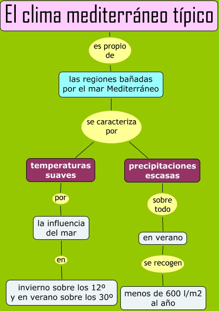 Este Cmap, tiene información relacionada con: El clima mediterráneo típico, precipitaciones escasas sobre todo en verano, temperaturas suaves por la influencia del mar, El clima mediterráneo típico es propio de las regiones bañadas por el mar Mediterráneo, en verano se recogen menos de 600 l/m2 al año, las regiones bañadas por el mar Mediterráneo se caracteriza por temperaturas suaves, la influencia del mar en invierno sobre los 12º y en verano sobre los 30º, las regiones bañadas por el mar Mediterráneo se caracteriza por precipitaciones escasas