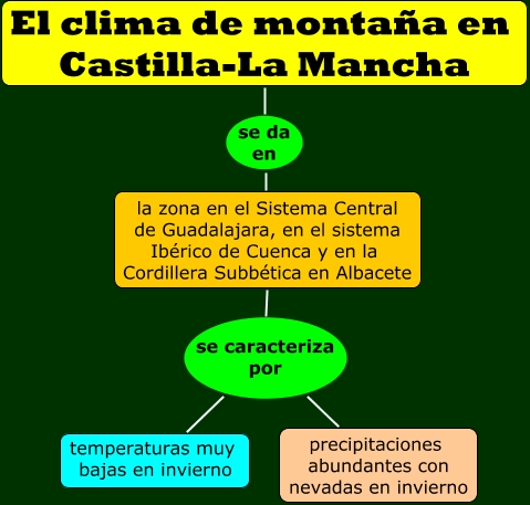 Este Cmap, tiene información relacionada con: El clima de montaña de Castilla-La Mancha, El clima de montaña en Castilla-La Mancha se da en la zona en el Sistema Central de Guadalajara, en el sistema Ibérico de Cuenca y en la Cordillera Subbética en Albacete, la zona en el Sistema Central de Guadalajara, en el sistema Ibérico de Cuenca y en la Cordillera Subbética en Albacete se caracteriza por temperaturas muy bajas en invierno, la zona en el Sistema Central de Guadalajara, en el sistema Ibérico de Cuenca y en la Cordillera Subbética en Albacete se caracteriza por precipitaciones abundantes con nevadas en invierno