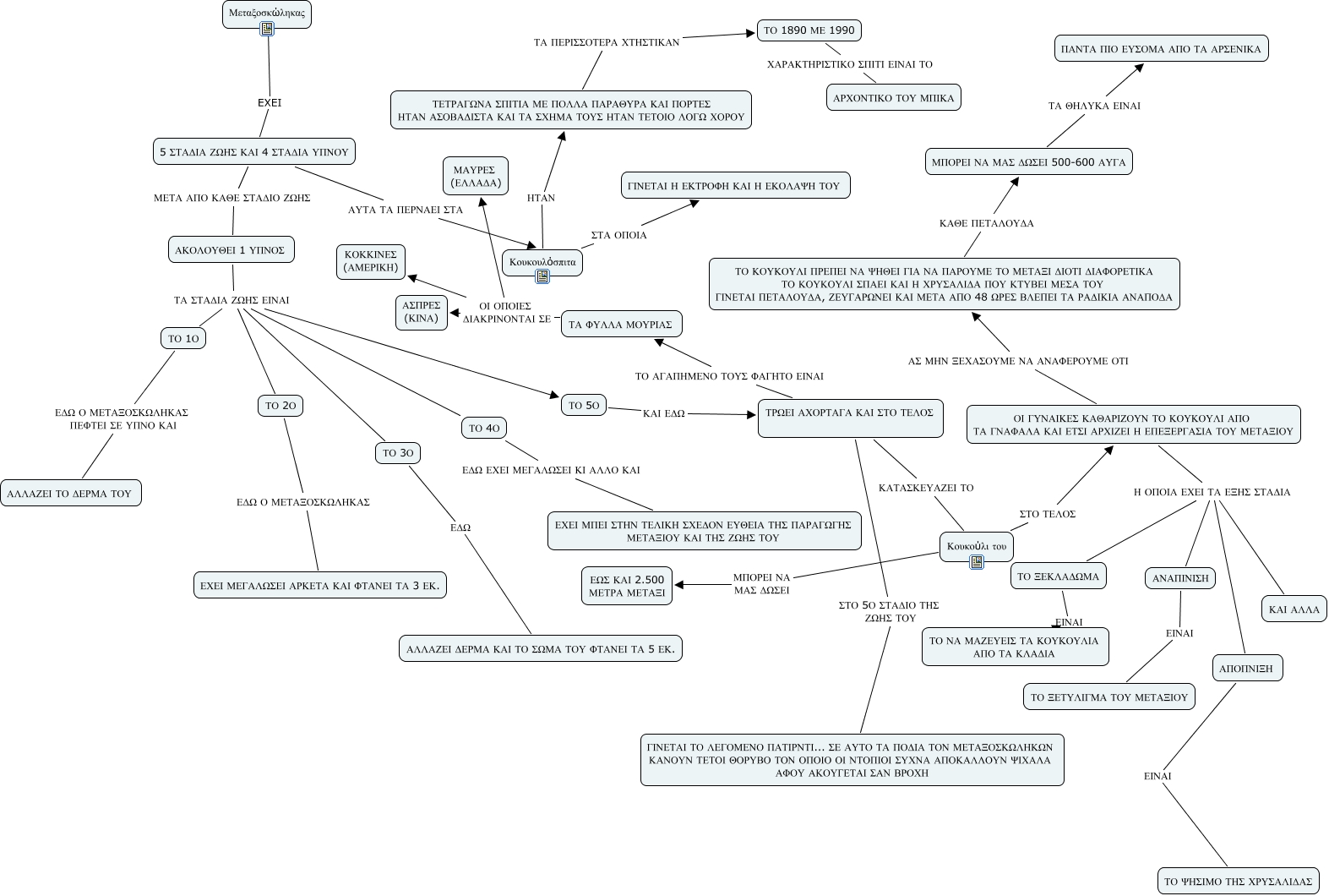 Αυτός ο εννοιολογικός χάρτης, που δημιουργήθηκε με το IHMC Cmap Tools, περιέχει πλήροφορίες που σχετίζονται με: Χάρτης 1, ΤΟ 5Ο ΚΑΙ ΕΔΩ ΤΡΩΕΙ ΑΧΟΡΤΑΓΑ ΚΑΙ ΣΤΟ ΤΕΛΟΣ, ΟΙ ΓΥΝΑΙΚΕΣ ΚΑΘΑΡΙΖΟΥΝ ΤΟ ΚΟΥΚΟΥΛΙ ΑΠΟ ΤΑ ΓΝΑΦΑΛΑ ΚΑΙ ΕΤΣΙ ΑΡΧΙΖΕΙ Η ΕΠΕΞΕΡΓΑΣΙΑ ΤΟΥ ΜΕΤΑΞΙΟΥ Η ΟΠΟΙΑ ΕΧΕΙ ΤΑ ΕΞΗΣ ΣΤΑΔΙΑ ΚΑΙ ΑΛΛΑ, ΤΡΩΕΙ ΑΧΟΡΤΑΓΑ ΚΑΙ ΣΤΟ ΤΕΛΟΣ ΚΑΤΑΣΚΕΥΑΖΕΙ ΤΟ Κουκούλι του, Κουκουλόσπιτα ΣΤΑ ΟΠΟΙΑ ΓΙΝΕΤΑΙ Η ΕΚΤΡΟΦΗ ΚΑΙ Η ΕΚΟΛΑΨΗ ΤΟΥ, ΟΙ ΓΥΝΑΙΚΕΣ ΚΑΘΑΡΙΖΟΥΝ ΤΟ ΚΟΥΚΟΥΛΙ ΑΠΟ ΤΑ ΓΝΑΦΑΛΑ ΚΑΙ ΕΤΣΙ ΑΡΧΙΖΕΙ Η ΕΠΕΞΕΡΓΑΣΙΑ ΤΟΥ ΜΕΤΑΞΙΟΥ Η ΟΠΟΙΑ ΕΧΕΙ ΤΑ ΕΞΗΣ ΣΤΑΔΙΑ ΑΠΟΠΝΙΞΗ, ΑΚΟΛΟΥΘΕΙ 1 ΥΠΝΟΣ ΤΑ ΣΤΑΔΙΑ ΖΩΗΣ ΕΙΝΑΙ ΤΟ 5Ο, ΟΙ ΓΥΝΑΙΚΕΣ ΚΑΘΑΡΙΖΟΥΝ ΤΟ ΚΟΥΚΟΥΛΙ ΑΠΟ ΤΑ ΓΝΑΦΑΛΑ ΚΑΙ ΕΤΣΙ ΑΡΧΙΖΕΙ Η ΕΠΕΞΕΡΓΑΣΙΑ ΤΟΥ ΜΕΤΑΞΙΟΥ Η ΟΠΟΙΑ ΕΧΕΙ ΤΑ ΕΞΗΣ ΣΤΑΔΙΑ ΤΟ ΞΕΚΛΑΔΩΜΑ, ΤΑ ΦΥΛΛΑ ΜΟΥΡΙΑΣ ΟΙ ΟΠΟΙΕΣ ΔΙΑΚΡΙΝΟΝΤΑΙ ΣΕ ΜΑΥΡΕΣ (ΕΛΛΑΔΑ), ΤΟ 1890 ΜΕ 1990 ΧΑΡΑΚΤΗΡΙΣΤΙΚΟ ΣΠΙΤΙ ΕΙΝΑΙ ΤΟ ΑΡΧΟΝΤΙΚΟ ΤΟΥ ΜΠΙΚΑ, Κουκουλόσπιτα ΗΤΑΝ ΤΕΤΡΑΓΩΝΑ ΣΠΙΤΙΑ ΜΕ ΠΟΛΛΑ ΠΑΡΑΘΥΡΑ ΚΑΙ ΠΟΡΤΕΣ ΗΤΑΝ ΑΣΟΒΑΔΙΣΤΑ ΚΑΙ ΤΑ ΣΧΗΜΑ ΤΟΥΣ ΗΤΑΝ ΤΕΤΟΙΟ ΛΟΓΩ ΧΟΡΟΥ, ΟΙ ΓΥΝΑΙΚΕΣ ΚΑΘΑΡΙΖΟΥΝ ΤΟ ΚΟΥΚΟΥΛΙ ΑΠΟ ΤΑ ΓΝΑΦΑΛΑ ΚΑΙ ΕΤΣΙ ΑΡΧΙΖΕΙ Η ΕΠΕΞΕΡΓΑΣΙΑ ΤΟΥ ΜΕΤΑΞΙΟΥ Η ΟΠΟΙΑ ΕΧΕΙ ΤΑ ΕΞΗΣ ΣΤΑΔΙΑ ΑΝΑΠΙΝΙΣΗ, ΑΚΟΛΟΥΘΕΙ 1 ΥΠΝΟΣ ΤΑ ΣΤΑΔΙΑ ΖΩΗΣ ΕΙΝΑΙ ΤΟ 2Ο, Κουκούλι του ΣΤΟ ΤΕΛΟΣ ΟΙ ΓΥΝΑΙΚΕΣ ΚΑΘΑΡΙΖΟΥΝ ΤΟ ΚΟΥΚΟΥΛΙ ΑΠΟ ΤΑ ΓΝΑΦΑΛΑ ΚΑΙ ΕΤΣΙ ΑΡΧΙΖΕΙ Η ΕΠΕΞΕΡΓΑΣΙΑ ΤΟΥ ΜΕΤΑΞΙΟΥ, ΜΠΟΡΕΙ ΝΑ ΜΑΣ ΔΩΣΕΙ 500-600 ΑΥΓΑ ΤΑ ΘΗΛΥΚΑ ΕΙΝΑΙ ΠΑΝΤΑ ΠΙΟ ΕΥΣΟΜΑ ΑΠΟ ΤΑ ΑΡΣΕΝΙΚΑ, ΟΙ ΓΥΝΑΙΚΕΣ ΚΑΘΑΡΙΖΟΥΝ ΤΟ ΚΟΥΚΟΥΛΙ ΑΠΟ ΤΑ ΓΝΑΦΑΛΑ ΚΑΙ ΕΤΣΙ ΑΡΧΙΖΕΙ Η ΕΠΕΞΕΡΓΑΣΙΑ ΤΟΥ ΜΕΤΑΞΙΟΥ ΑΣ ΜΗΝ ΞΕΧΑΣΟΥΜΕ ΝΑ ΑΝΑΦΕΡΟΥΜΕ ΟΤΙ ΤΟ ΚΟΥΚΟΥΛΙ ΠΡΕΠΕΙ ΝΑ ΨΗΘΕΙ ΓΙΑ ΝΑ ΠΑΡΟΥΜΕ ΤΟ ΜΕΤΑΞΙ ΔΙΟΤΙ ΔΙΑΦΟΡΕΤΙΚΑ ΤΟ ΚΟΥΚΟΥΛΙ ΣΠΑΕΙ ΚΑΙ Η ΧΡΥΣΑΛΙΔΑ ΠΟΥ ΚΤΥΒΕΙ ΜΕΣΑ ΤΟΥ ΓΙΝΕΤΑΙ ΠΕΤΑΛΟΥΔΑ, ΖΕΥΓΑΡΩΝΕΙ ΚΑΙ ΜΕΤΑ ΑΠΟ 48 ΩΡΕΣ ΒΛΕΠΕΙ ΤΑ ΡΑΔΙΚΙΑ ΑΝΑΠΟΔΑ, ΑΠΟΠΝΙΞΗ ΕΙΝΑΙ ΤΟ ΨΗΣΙΜΟ ΤΗΣ ΧΡΥΣΑΛΙΔΑΣ, Κουκούλι του ΜΠΟΡΕΙ ΝΑ ΜΑΣ ΔΩΣΕΙ ΕΩΣ ΚΑΙ 2.500 ΜΕΤΡΑ ΜΕΤΑΞΙ, 5 ΣΤΑΔΙΑ ΖΩΗΣ ΚΑΙ 4 ΣΤΑΔΙΑ ΥΠΝΟΥ ΜΕΤΑ ΑΠΟ ΚΑΘΕ ΣΤΑΔΙΟ ΖΩΗΣ ΑΚΟΛΟΥΘΕΙ 1 ΥΠΝΟΣ, 5 ΣΤΑΔΙΑ ΖΩΗΣ ΚΑΙ 4 ΣΤΑΔΙΑ ΥΠΝΟΥ ΑΥΤΑ ΤΑ ΠΕΡΝΑΕΙ ΣΤΑ Κουκουλόσπιτα, ΤΟ ΚΟΥΚΟΥΛΙ ΠΡΕΠΕΙ ΝΑ ΨΗΘΕΙ ΓΙΑ ΝΑ ΠΑΡΟΥΜΕ ΤΟ ΜΕΤΑΞΙ ΔΙΟΤΙ ΔΙΑΦΟΡΕΤΙΚΑ ΤΟ ΚΟΥΚΟΥΛΙ ΣΠΑΕΙ ΚΑΙ Η ΧΡΥΣΑΛΙΔΑ ΠΟΥ ΚΤΥΒΕΙ ΜΕΣΑ ΤΟΥ ΓΙΝΕΤΑΙ ΠΕΤΑΛΟΥΔΑ, ΖΕΥΓΑΡΩΝΕΙ ΚΑΙ ΜΕΤΑ ΑΠΟ 48 ΩΡΕΣ ΒΛΕΠΕΙ ΤΑ ΡΑΔΙΚΙΑ ΑΝΑΠΟΔΑ ΚΑΘΕ ΠΕΤΑΛΟΥΔΑ ΜΠΟΡΕΙ ΝΑ ΜΑΣ ΔΩΣΕΙ 500-600 ΑΥΓΑ
