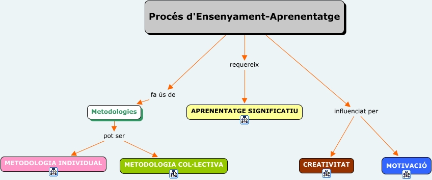 Este Cmap, tiene información relacionada con: Mapa general v3, Procés d'Ensenyament-Aprenentatge fa ús de Metodologies, Metodologies pot ser METODOLOGIA COL·LECTIVA, Procés d'Ensenyament-Aprenentatge influenciat per MOTIVACIÓ, Metodologies pot ser METODOLOGIA INDIVIDUAL, Procés d'Ensenyament-Aprenentatge requereix APRENENTATGE SIGNIFICATIU, Procés d'Ensenyament-Aprenentatge influenciat per CREATIVITAT