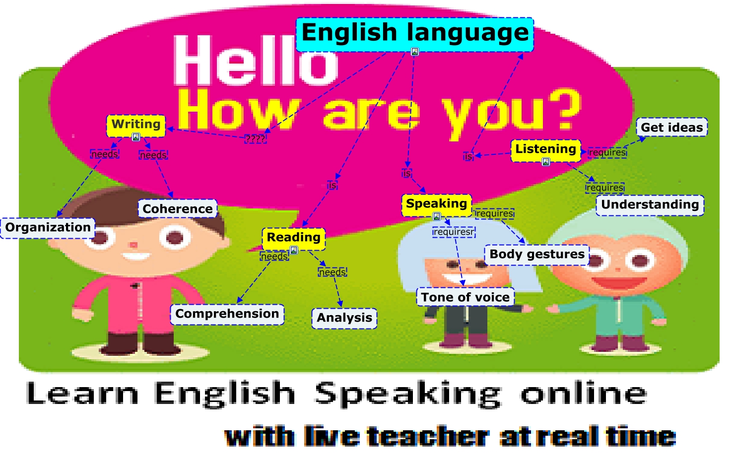 Este Cmap, tiene información relacionada con: final proyect, Reading needs Analysis, Speaking requires Body gestures, Listening requires Get ideas, Listening is English language, Writing needs Organization, English language ???? Writing, Reading needs Comprehension, English language is Reading, Writing needs Coherence, Listening requires Understanding, Speaking requiresr Tone of voice, English language is Speaking