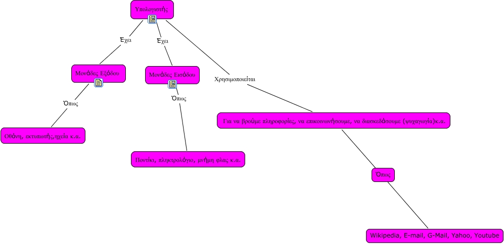 Αυτ�?ς ο εννοιολογικ�?ς χά�?της, που δημιου�?γήθηκε με το IHMC Cmap Tools, πε�?ιέχει πλή�?οφο�?ίες που σχετίζονται με: Δ�?μνα, Υπολογιστής �?χει �?ονάδες Εξ�?δου, Για να β�?ο�?με πλη�?οφο�?ίες, να επικοινωνήσουμε, να διασκεδάσουμε (�?υχαγωγία)κ.α. ???? Wikipedia, E-mail, G-Mail, Yahoo, Youtube, Υπολογιστής �?χει �?ονάδες Εισ�?δου, �?ονάδες Εξ�?δου �?πως �?θ�?νη, εκτυπωτής,ηχεία κ.α., Υπολογιστής Χ�?ησιμοποιείται Για να β�?ο�?με πλη�?οφο�?ίες, να επικοινωνήσουμε, να διασκεδάσουμε (�?υχαγωγία)κ.α., �?ονάδες Εισ�?δου �?πως Ποντίκι, πληκτ�?ολ�?γιο, μνήμη φλας κ.α.