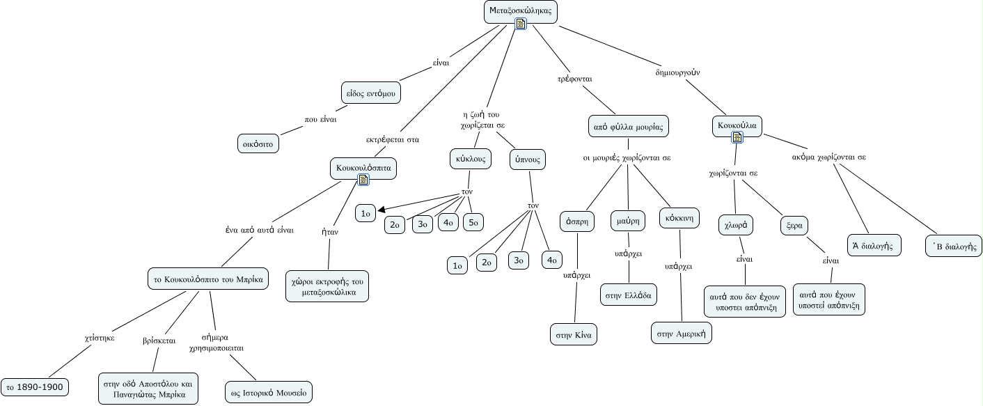 Αυτ�?ς ο εννοιολογικ�?ς χά�?της, που δημιου�?γήθηκε με το IHMC Cmap Tools, πε�?ιέχει πλή�?οφο�?ίες που σχετίζονται με: Ψάξε να με β�?είς 2, Mεταξοσκ�?ληκας η ζωή του χω�?ίζεται σε κ�?κλους, κ�?κλους τον 4ο, το �?ουκουλ�?σπιτο του �?π�?ίκα β�?ίσκεται στην οδ�? Αποστ�?λου και Παναγι�?τας �?π�?ίκα, Mεταξοσκ�?ληκας δημιου�?γο�?ν �?ουκο�?λια, ξε�?α είναι αυτά που έχουν υποστεί απ�?πνιξη, �?πνους τον 2ο, �?ουκο�?λια χω�?ίζονται σε ξε�?α, �?ουκουλ�?σπιτα ήταν χ�?�?οι εκτ�?οφής του μεταξοσκ�?λικα, �?ουκουλ�?σπιτα ένα απ�? αυτά είναι το �?ουκουλ�?σπιτο του �?π�?ίκα, απ�? φ�?λλα μου�?ίας οι μου�?ιές χω�?ίζονται σε κ�?κκινη, �?ουκο�?λια ακ�?μα χω�?ίζονται σε ΄Β διαλογής, �?πνους τον 4ο, άσπ�?η υπά�?χει στην �?ίνα, Mεταξοσκ�?ληκας η ζωή του χω�?ίζεται σε �?πνους, Mεταξοσκ�?ληκας είναι είδος εντ�?μου, κ�?κλους τον 5ο, κ�?κλους τον 2ο, κ�?κλους τον 3ο, το �?ουκουλ�?σπιτο του �?π�?ίκα χτίστηκε το 1890-1900, Mεταξοσκ�?ληκας εκτ�?έφεται στα �?ουκουλ�?σπιτα