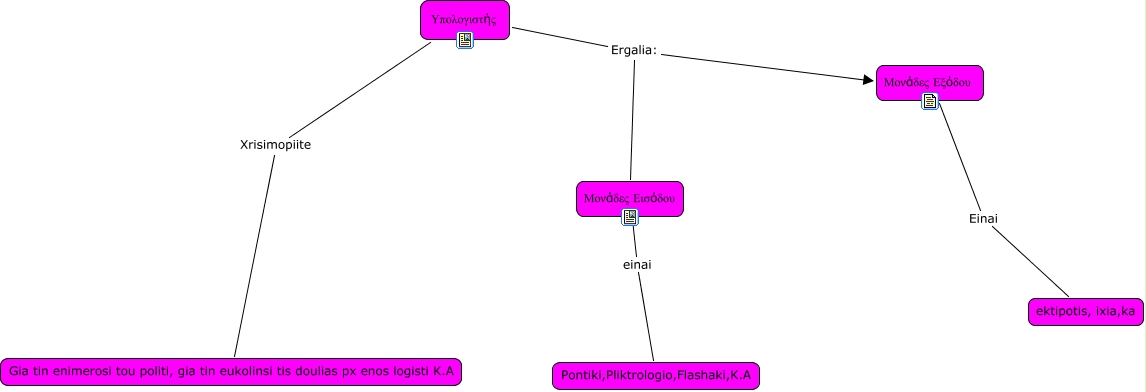 Αυτ�?ς ο εννοιολογικ�?ς χά�?της, που δημιου�?γήθηκε με το IHMC Cmap Tools, πε�?ιέχει πλή�?οφο�?ίες που σχετίζονται με: �?έ�?η υπολογιστή1, �?ονάδες Εξ�?δου Einai ektipotis, ixia,ka, Υπολογιστής Ergalia: �?ονάδες Εξ�?δου, Υπολογιστής Xrisimopiite Gia tin enimerosi tou politi, gia tin eukolinsi tis doulias px enos logisti K.A, �?ονάδες Εισ�?δου einai Pontiki,Pliktrologio,Flashaki,K.A, Υπολογιστής Ergalia: �?ονάδες Εισ�?δου