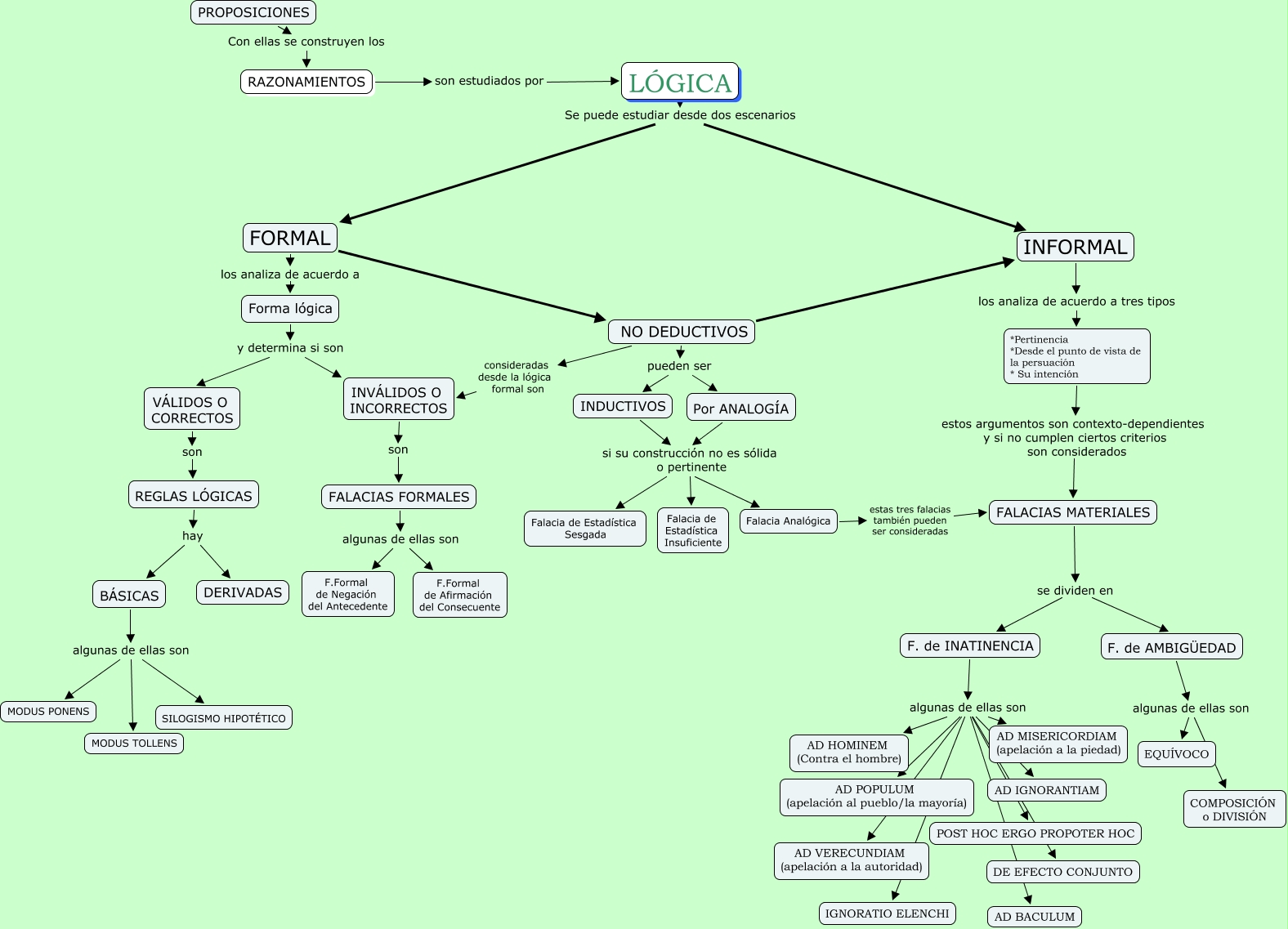Este Cmap, tiene información relacionada con: Lógica IPC_2, NO DEDUCTIVOS pueden ser Por ANALOGÍA, F. de INATINENCIA algunas de ellas son AD BACULUM, FORMAL NO DEDUCTIVOS, Forma lógica y determina si son VÁLIDOS O CORRECTOS, REGLAS LÓGICAS hay DERIVADAS, INVÁLIDOS O INCORRECTOS son FALACIAS FORMALES, *Pertinencia *Desde el punto de vista de la persuación * Su intención estos argumentos son contexto-dependientes y si no cumplen ciertos criterios son considerados FALACIAS MATERIALES, BÁSICAS algunas de ellas son MODUS TOLLENS, Por ANALOGÍA si su construcción no es sólida o pertinente Falacia de Estadística Insuficiente, INDUCTIVOS si su construcción no es sólida o pertinente Falacia de Estadística Insuficiente, F. de INATINENCIA algunas de ellas son POST HOC ERGO PROPOTER HOC, FORMAL los analiza de acuerdo a Forma lógica, LÓGICA Se puede estudiar desde dos escenarios FORMAL, NO DEDUCTIVOS consideradas desde la lógica formal son INVÁLIDOS O INCORRECTOS, LÓGICA Se puede estudiar desde dos escenarios INFORMAL, F. de INATINENCIA algunas de ellas son AD HOMINEM (Contra el hombre), NO DEDUCTIVOS pueden ser INDUCTIVOS, FALACIAS MATERIALES se dividen en F. de AMBIGÜEDAD, INDUCTIVOS si su construcción no es sólida o pertinente Falacia Analógica, F. de INATINENCIA algunas de ellas son DE EFECTO CONJUNTO