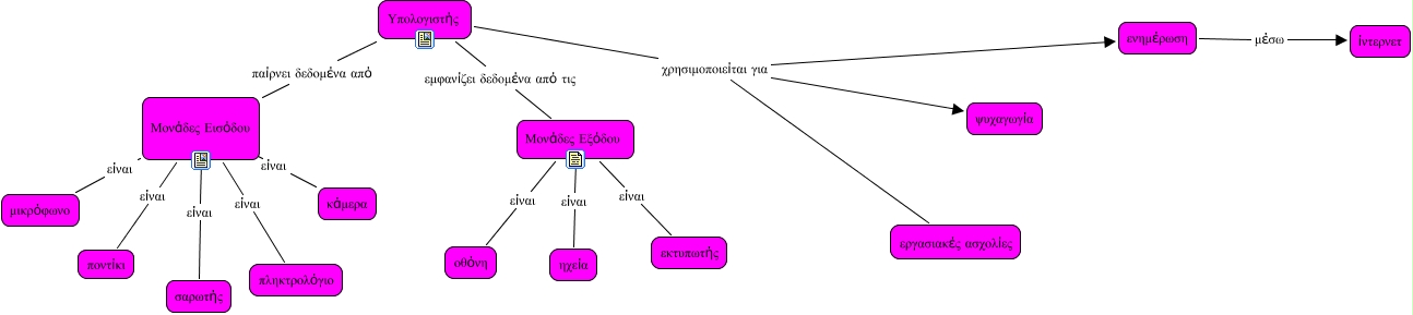 Αυτός ο εννοιολογικός χάρτης, που δημιουργήθηκε με το IHMC Cmap Tools, περιέχει πλήροφορίες που σχετίζονται με: αντώνης, Υπολογιστής χρησιμοποιείται για ενημέρωση, Υπολογιστής χρησιμοποιείται για εργασιακές ασχολίες, Μονάδες Εξόδου είναι ηχεία, Μονάδες Εισόδου είναι μικρόφωνο, Υπολογιστής χρησιμοποιείται για ψυχαγωγία, Μονάδες Εξόδου είναι εκτυπωτής, Μονάδες Εξόδου είναι οθόνη, Υπολογιστής παίρνει δεδομένα από Μονάδες Εισόδου, Μονάδες Εισόδου είναι σαρωτής, Μονάδες Εισόδου είναι πληκτρολόγιο, ενημέρωση μέσω ίντερνετ, Μονάδες Εισόδου είναι κάμερα, Υπολογιστής εμφανίζει δεδομένα από τις Μονάδες Εξόδου, Μονάδες Εισόδου είναι ποντίκι