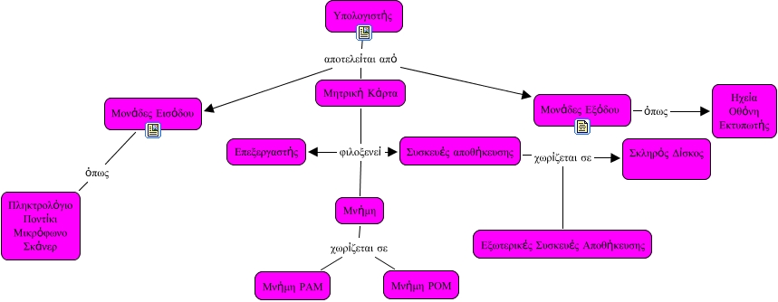 Αυτός ο εννοιολογικός χάρτης, που δημιουργήθηκε με το IHMC Cmap Tools, περιέχει πλήροφορίες που σχετίζονται με: Τάσος Μ, Υπολογιστής αποτελείται από Μονάδες Εξόδου, Υπολογιστής αποτελείται από Μονάδες Εισόδου, Συσκευές αποθήκευσης χωρίζεται σε Εξωτερικές Συσκευές Αποθήκευσης, Υπολογιστής αποτελείται από Μητρική Κάρτα, Μητρική Κάρτα φιλοξενεί Συσκευές αποθήκευσης, Μητρική Κάρτα φιλοξενεί Επεξεργαστής, Μνήμη χωρίζεται σε Μνήμη ΡΟΜ, Μητρική Κάρτα φιλοξενεί Μνήμη, Μονάδες Εξόδου όπως Ηχεία Οθόνη Εκτυπωτής, Μονάδες Εισόδου όπως Πληκτρολόγιο Ποντίκι Μικρόφωνο Σκάνερ, Συσκευές αποθήκευσης χωρίζεται σε Σκληρός Δίσκος, Μνήμη χωρίζεται σε Μνήμη ΡΑΜ
