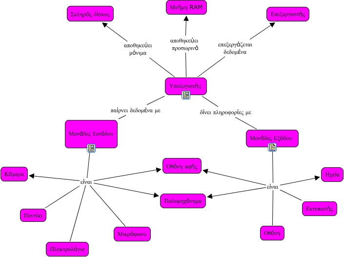 Αυτός ο εννοιολογικός χάρτης, που δημιουργήθηκε με το IHMC Cmap Tools, περιέχει πλήροφορίες που σχετίζονται με: Βασικά μέρη του υπολογιστή, Μονάδες Εισόδου είναι Πολυμηχάνημα, Μονάδες Εισόδου είναι Πληκτρολόγιο, Υπολογιστής αποθηκεύει προσωρινά Μνήμη RAM, Μονάδες Εισόδου είναι Μικρόφωνο, Υπολογιστής δίνει πληροφορίες με Μονάδες Εξόδου, Μονάδες Εισόδου είναι Κάμερα, Μονάδες Εξόδου είναι Ηχεία, Υπολογιστής επεξεργάζεται δεδομένα Επεξεργαστής, Μονάδες Εισόδου είναι Οθόνη αφής, Υπολογιστής παίρνει δεδομένα με Μονάδες Εισόδου, Μονάδες Εξόδου είναι Εκτυπωτής, Μονάδες Εισόδου είναι Ποντίκι, Μονάδες Εξόδου είναι Οθόνη αφής, Υπολογιστής αποθηκεύει μόνιμα Σκληρός δίσκος, Μονάδες Εξόδου είναι Πολυμηχάνημα, Μονάδες Εξόδου είναι Οθόνη
