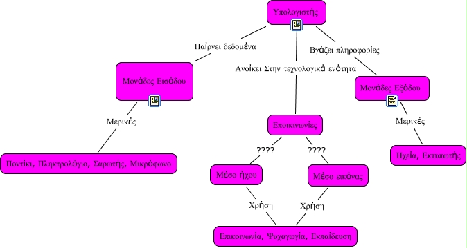Αυτός ο εννοιολογικός χάρτης, που δημιουργήθηκε με το IHMC Cmap Tools, περιέχει πλήροφορίες που σχετίζονται με: Υπολογιστής(Διάφορα σχετικά), Μέσο εικόνας Χρήση Επικοινωνία, Ψυχαγωγία, Εκπαίδευση, Εποικινωνίες ???? Μέσο ήχου, Μονάδες Εισόδου Μερικές Ποντίκι, Πληκτρολόγιο, Σαρωτής, Μικρόφωνο, Υπολογιστής Βγάζει πληροφορίες Μονάδες Εξόδου, Μέσο ήχου Χρήση Επικοινωνία, Ψυχαγωγία, Εκπαίδευση, Υπολογιστής Ανοίκει Στην τεχνολογικά ενότητα Εποικινωνίες, Μονάδες Εξόδου Μερικές Ηχεία, Εκτυπωτής, Υπολογιστής Παίρνει δεδομένα Μονάδες Εισόδου, Εποικινωνίες ???? Μέσο εικόνας