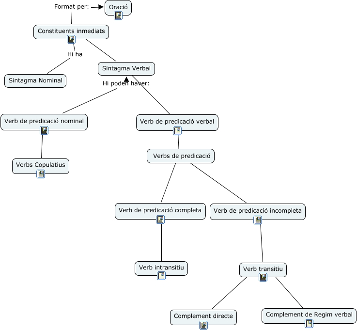 Aquest mapa conceptual conté informació relacionada amb: Sintaxis, Verb de predicació incompleta ???? Verb transitiu, Verb de predicació nominal Hi poden haver: Sintagma Verbal, Verb transitiu ???? Complement de Regim verbal, Constituents inmediats Hi ha Sintagma Nominal, Verb de predicació nominal ???? Verbs Copulatius, Verb transitiu ???? Complement directe, Oració Format per: Constituents inmediats, Constituents inmediats ???? Sintagma Verbal, Verb de predicació verbal ???? Verbs de predicació, Verbs de predicació ???? Verb de predicació completa, Verb de predicació completa ???? Verb intransitiu, Verb de predicació verbal ???? Sintagma Verbal, Verbs de predicació ???? Verb de predicació incompleta