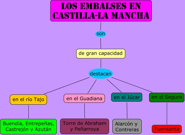 Este Cmap, tiene información relacionada con: Los embalses de Castilla-La Mancha, de gran capacidad destacan en el Júcar, de gran capacidad destacan en el río Tajo, Los embalses en Castilla-La Mancha son de gran capacidad, de gran capacidad destacan en el Guadiana, de gran capacidad destacan en el Segura, en el Guadiana Torre de Abraham y Peñarroya, en el Júcar Alarcón y Contreras, en el río Tajo Buendía, Entrepeñas, Castrejón y Azután, en el Segura Fuensanta