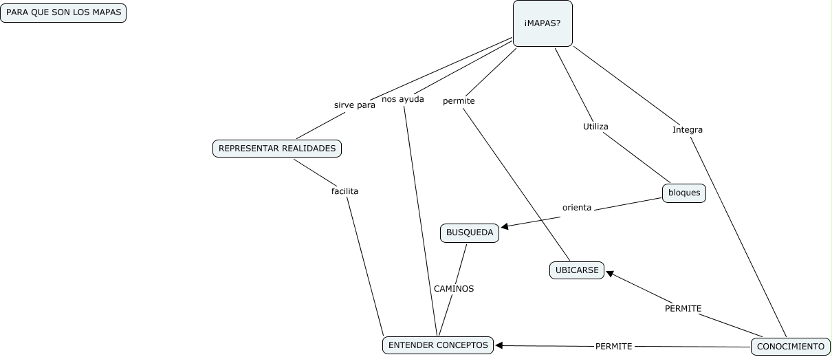 Este Cmap, tiene información relacionada con: PETER1, REPRESENTAR REALIDADES facilita ENTENDER CONCEPTOS, ¡MAPAS? Utiliza bloques, bloques orienta BUSQUEDA, ¡MAPAS? permite UBICARSE, CONOCIMIENTO PERMITE ENTENDER CONCEPTOS, ¡MAPAS? sirve para REPRESENTAR REALIDADES, CONOCIMIENTO PERMITE UBICARSE, ¡MAPAS? nos ayuda ENTENDER CONCEPTOS, BUSQUEDA CAMINOS ENTENDER CONCEPTOS, ¡MAPAS? Integra CONOCIMIENTO