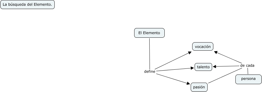 Este Cmap, tiene información relacionada con: elemento, El Elemento define talento, persona de cada vocación, El Elemento define pasión, El Elemento define vocación, persona de cada pasión, persona de cada talento