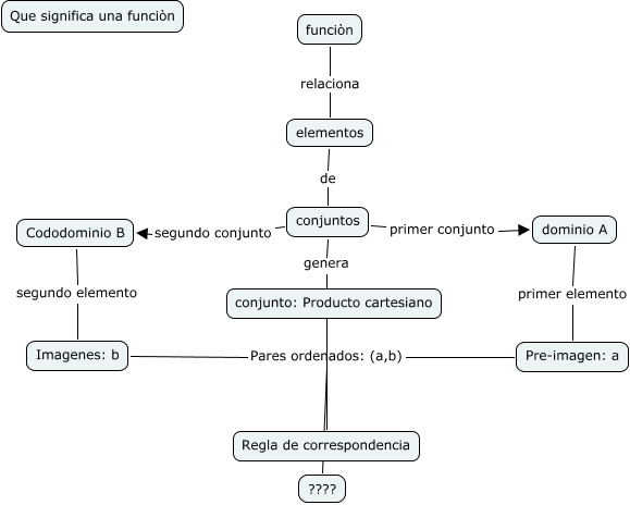 Este Cmap, tiene información relacionada con: funcion, Imagenes: b Pares ordenados: (a,b) ????, dominio A primer elemento Pre-imagen: a, Cododominio B segundo elemento Imagenes: b, conjuntos segundo conjunto Cododominio B, elementos de conjuntos, conjuntos genera Regla de correspondencia, Pre-imagen: a Pares ordenados: (a,b) ????, conjuntos primer conjunto dominio A, funciòn relaciona elementos