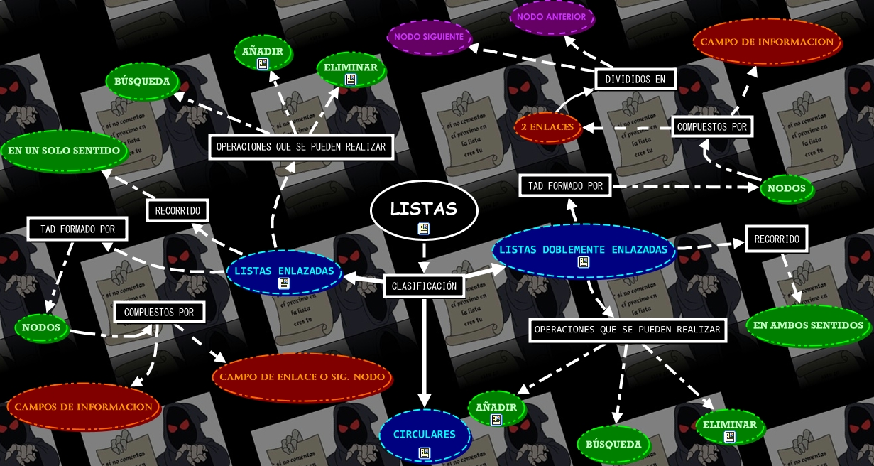 Este Cmap, tiene información relacionada con: Listas, LISTAS DOBLEMENTE ENLAZADAS TAD FORMADO POR NODOS, LISTAS ENLAZADAS OPERACIONES QUE SE PUEDEN REALIZAR ELIMINAR, LISTAS DOBLEMENTE ENLAZADAS OPERACIONES QUE SE PUEDEN REALIZAR ELIMINAR, NODOS COMPUESTOS POR CAMPO DE INFORMACIÓN, LISTAS ENLAZADAS TAD FORMADO POR NODOS, NODOS COMPUESTOS POR 2 ENLACES, NODOS COMPUESTOS POR CAMPO DE ENLACE O SIG. NODO, LISTAS ENLAZADAS OPERACIONES QUE SE PUEDEN REALIZAR AÑADIR, LISTAS DOBLEMENTE ENLAZADAS OPERACIONES QUE SE PUEDEN REALIZAR BÚSQUEDA, LISTAS ENLAZADAS RECORRIDO EN UN SOLO SENTIDO, LISTAS DOBLEMENTE ENLAZADAS OPERACIONES QUE SE PUEDEN REALIZAR AÑADIR, 2 ENLACES DIVIDIDOS EN NODO SIGUIENTE, LISTAS CLASIFICACIÓN LISTAS ENLAZADAS, LISTAS DOBLEMENTE ENLAZADAS RECORRIDO EN AMBOS SENTIDOS, 2 ENLACES DIVIDIDOS EN NODO ANTERIOR, LISTAS CLASIFICACIÓN LISTAS DOBLEMENTE ENLAZADAS, NODOS COMPUESTOS POR CAMPOS DE INFORMACIÓN, LISTAS ENLAZADAS OPERACIONES QUE SE PUEDEN REALIZAR BÚSQUEDA, LISTAS CLASIFICACIÓN CIRCULARES