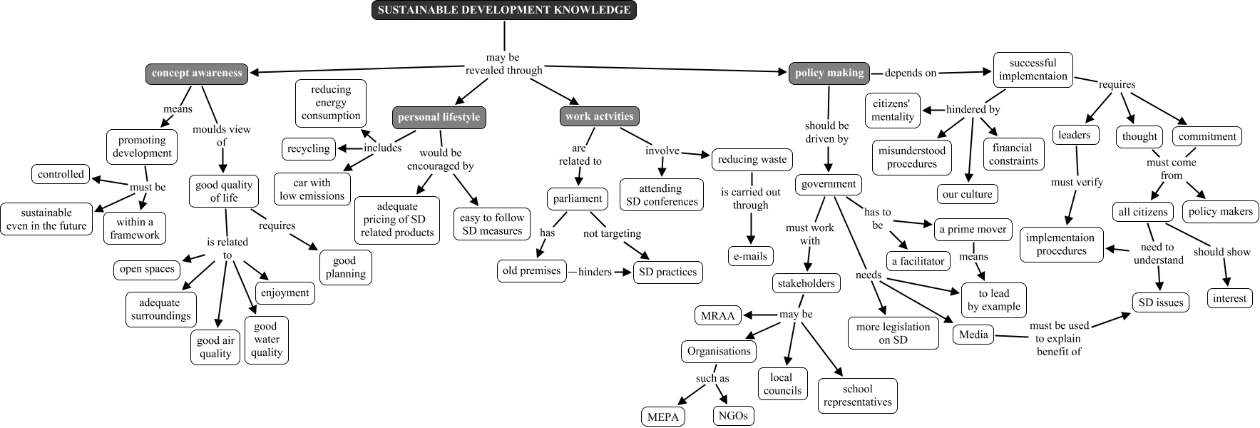This Concept Map, created with IHMC CmapTools, has information related to: Carl - paper, parliament not targeting SD practices, all citizens need to understand implementaion procedures, good quality of life is related to good air quality, good quality of life is related to open spaces, commitment must come from policy makers, SUSTAINABLE DEVELOPMENT KNOWLEDGE may be revealed through work actvities, a prime mover means to lead by example, all citizens should show interest, parliament has old premises, all citizens need to understand SD issues, successful implementaion hindered by citizens' mentality, personal lifestyle includes reducing energy consumption, policy making depends on successful implementaion, successful implementaion hindered by misunderstood procedures, leaders must verify implementaion procedures, commitment must come from all citizens, government needs Media, personal lifestyle would be encouraged by easy to follow SD measures, work actvities are related to parliament, work actvities involve reducing waste