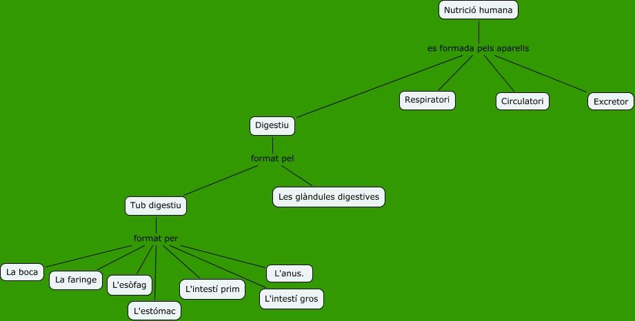 This Concept Map, created with IHMC CmapTools, has information related to: La funcio de futricio, Tub digestiu format per L'anus., Tub digestiu format per L'esòfag, Tub digestiu format per L'intestí prim, Nutrició humana es formada pels aparells Excretor, Tub digestiu format per L'estómac, Digestiu format pel Tub digestiu, Tub digestiu format per La faringe, Nutrició humana es formada pels aparells Digestiu, Nutrició humana es formada pels aparells Respiratori, Digestiu format pel Les glàndules digestives, Tub digestiu format per L'intestí gros, Tub digestiu format per La boca, Nutrició humana es formada pels aparells Circulatori