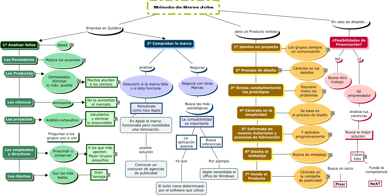 Este Cmap, tiene información relacionada con: steve jobs, 1º Analizar fallos Acuerdos Los Poveedores, Método de Steve Jobs Empresa en Quiebra 1º Analizar fallos, Casos Jobs Busca un socio Pixar, 7º Vende el Producto ¿Cómo? Apple estudiaba y se centraba a fondo en cada una de sus campañas de publicidad. Logra llegar al máx. público posible., 5º Infórmate de nuevos materiales y procesos de fabricación Esto es Deja que el cambio de material sea progresivo pero infórmate constantemente de las innovaciones y aplícalas a tus nuevos productos. Los procesos de fabricación pondrán la diferencia entre el éxito o uno más del montón., Método de Steve Jobs Empresa en Quiebra 2º Comprobar la marca, Casos Jobs Funda la competencia NeXT, Los empleados y directivos ???? Los clientes, 4º Céntrate en la simplicidad ¿cómo? con un proceso de diseño basado en muchas ideas y su perfeccionamiento, 2º Proceso de diseño ???? 3º Revisa constantemente los prototipos, En Apple la marca funcionaba pero necesitaba una renovación. posible solución Convocar un concurso de agencias de publicidad, 2º Comprobar la marca Negociar Negocia con otras Marcas, 1º Analizar fallos Los Productos Demasiados, Eliminar lo máx. posible, Quedarse con las joyas y los que más puedan aportar, eliminar al resto. Los directivos eliminar a la vieja guardia y reemplazarlos. conservar siempre a Los eruditos y los que más aporten. LOS GRUPOS CUANTO M�?S PEQUEÑOS MEJOR, Método de Steve Jobs En caso de despido... ¿Posibilidades de Financiación?, 1º Analizar fallos Los Productos Los clónicos, Análisis exhaustivo y después Concentrarse, eliminar y sanear lo que no sea indispensable o no esté previsto que dea ingresos, Los clónicos Los proyectos Los empleados y directivos, La compatibilidad es importante Ya que El éxito viene determinado por el software que utiliza, Casos Jobs Busca un socio Pixar