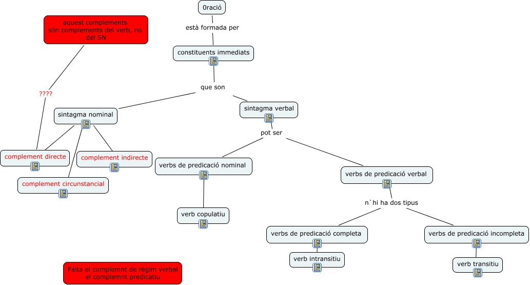 Aquest mapa conceptual conté informació relacionada amb: mapa conceotual, sintagma nominal ???? complement directe, constituents immediats que son sintagma verbal, sintagma nominal que son sintagma verbal, aquest complements són complements del verb, no del SN ???? complement directe, sintagma nominal ???? complement circunstancial, sintagma nominal ???? complement indirecte, verbs de predicació nominal ???? verb copulatiu, verbs de predicació incompleta ???? verb transitiu, sintagma verbal pot ser verbs de predicació verbal, verbs de predicació completa ???? verb intransitiu, verbs de predicació verbal n`hi ha dos tipus verbs de predicació incompleta, verbs de predicació verbal n`hi ha dos tipus verbs de predicació completa, sintagma verbal pot ser verbs de predicació nominal, 0ració està formada per constituents immediats