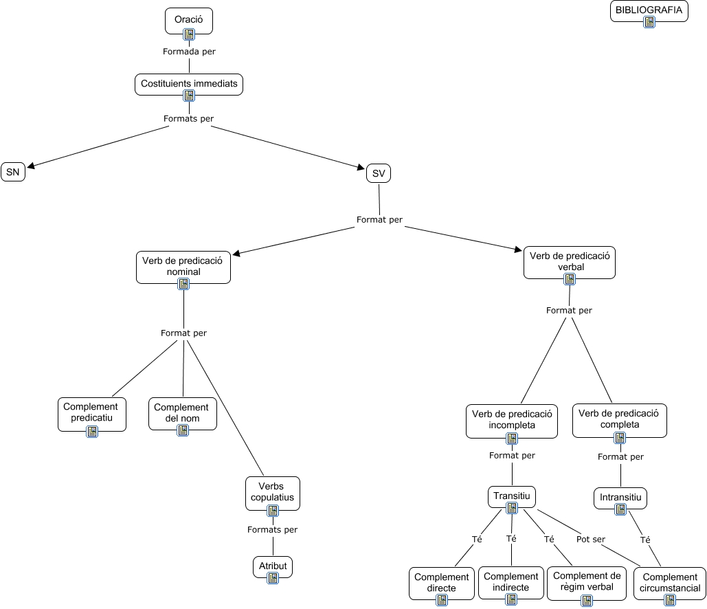 Aquest mapa conceptual conté informació relacionada amb: Asma-Oriol - Pronoms febles, Verb de predicació nominal Format per Complement del nom, Oració Formada per Costituients immediats, Verbs copulatius Formats per Atribut, Costituients immediats Formats per SV, Intransitiu Té Complement circumstancial, Transitiu Té Complement directe, Transitiu Té Complement indirecte, Transitiu Té Complement de règim verbal, SV Format per Verb de predicació verbal, Costituients immediats Formats per SN, Verb de predicació nominal Format per Complement predicatiu, Verb de predicació verbal Format per Verb de predicació completa, Verb de predicació completa Format per Intransitiu, Verb de predicació verbal Format per Verb de predicació incompleta, SV Format per Verb de predicació nominal, Verb de predicació incompleta Format per Transitiu, Verb de predicació nominal Format per Verbs copulatius, Transitiu Pot ser Complement circumstancial