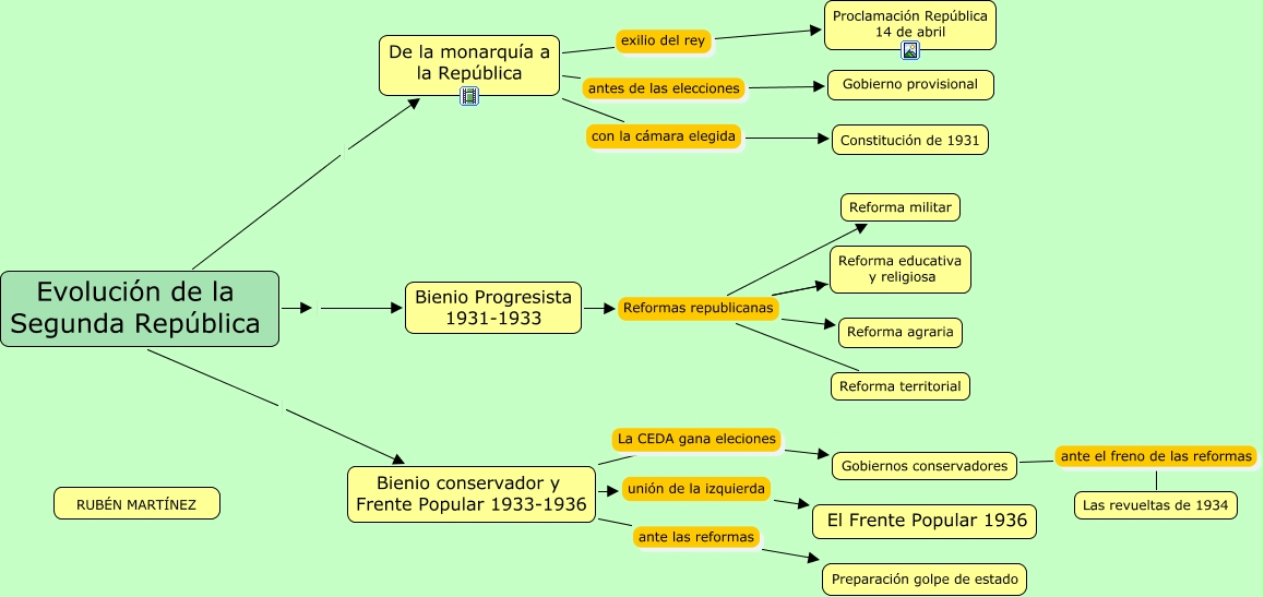 Este Cmap, tiene información relacionada con: republica, Bienio Progresista 1931-1933 Reformas republicanas Reforma agraria, Reforma educativa y religiosa Reformas republicanas Reforma agraria, De la monarquía a la República exilio del rey Proclamación República 14 de abril, Bienio Progresista 1931-1933 Reformas republicanas Reforma territorial, Bienio Progresista 1931-1933 Reformas republicanas Reforma educativa y religiosa, Evolución de la Segunda República Bienio Progresista 1931-1933, Reforma educativa y religiosa Reformas republicanas Reforma territorial, Bienio conservador y Frente Popular 1933-1936 La CEDA gana eleciones Gobiernos conservadores, De la monarquía a la República con la cámara elegida Constitución de 1931, Evolución de la Segunda República De la monarquía a la República, Evolución de la Segunda República Bienio conservador y Frente Popular 1933-1936, Reforma educativa y religiosa Reformas republicanas Reforma militar, Bienio conservador y Frente Popular 1933-1936 ante las reformas Preparación golpe de estado, Bienio Progresista 1931-1933 Reformas republicanas Reforma militar, Bienio conservador y Frente Popular 1933-1936 unión de la izquierda El Frente Popular 1936, De la monarquía a la República antes de las elecciones Gobierno provisional, Gobiernos conservadores ante el freno de las reformas Las revueltas de 1934