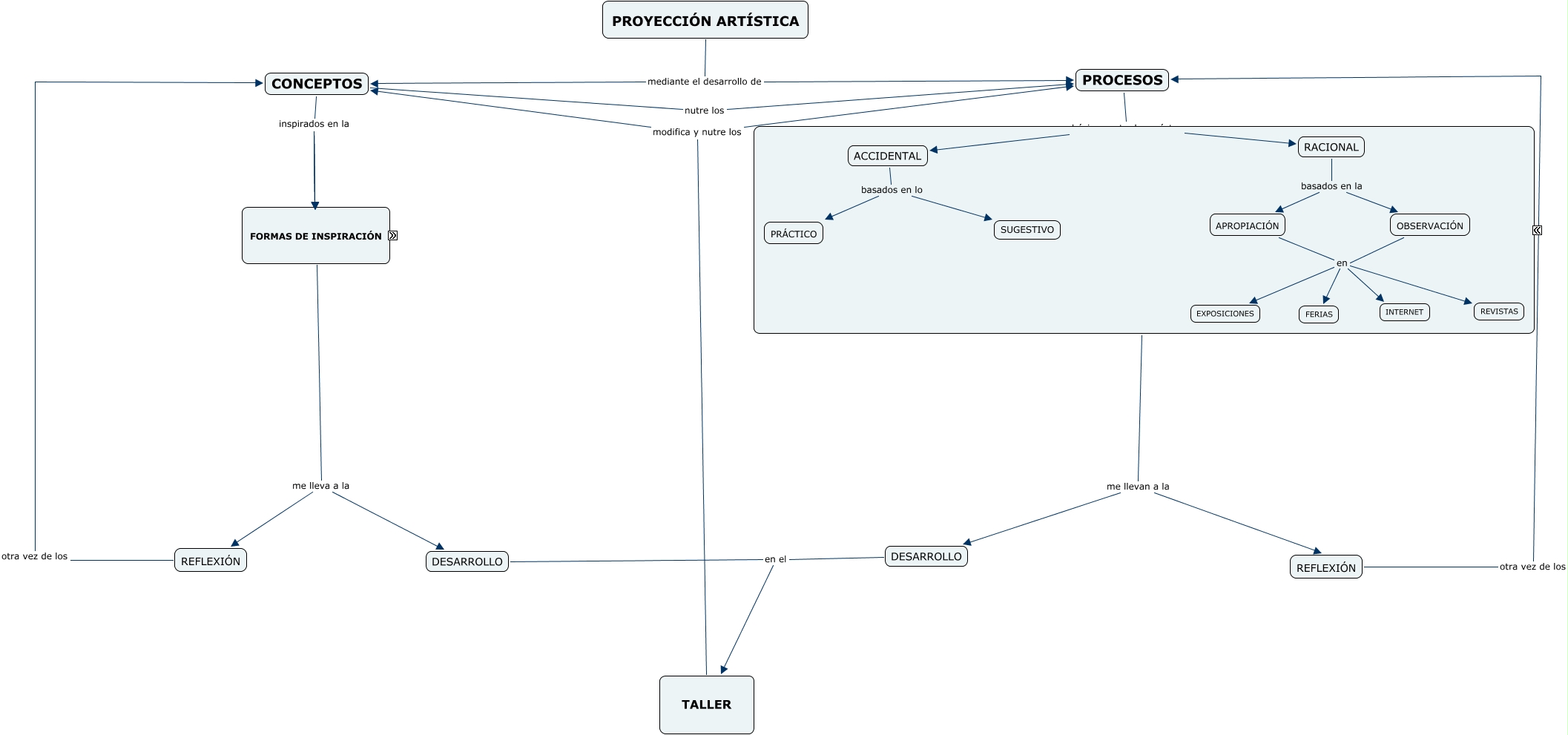 Este Cmap, tiene información relacionada con: Carlos Sebastiá, ENTORNO LEJANO a través de la VIAJES, OBSERVACIÓN del ENTORNO CERCANO, ENTORNO LEJANO a través de la CONVERSACIONES, ENTORNO CERCANO a través de la PRENSA, REFLEXIÓN otra vez de los PROCESOS, VISUALIZACIÓN de TV, OBSERVACIÓN del ENTORNO LEJANO, CONCEPTOS inspirados en la VISUALIZACIÓN, OBSERVACIÓN en FERIAS, CONCEPTOS inspirados en la OBSERVACIÓN, LECTURA de LIBROS, CONCEPTOS nutre los PROCESOS, PROCESOS básicamente de carácter RACIONAL, ENTORNO CERCANO a través de la CONVERSACIONES, DESARROLLO en el TALLER, ACCIDENTAL basados en lo SUGESTIVO, OBSERVACIÓN en EXPOSICIONES, TALLER modifica y nutre los PROCESOS, REFLEXIÓN otra vez de los CONCEPTOS, ENTORNO CERCANO a través de la ESCUCHA