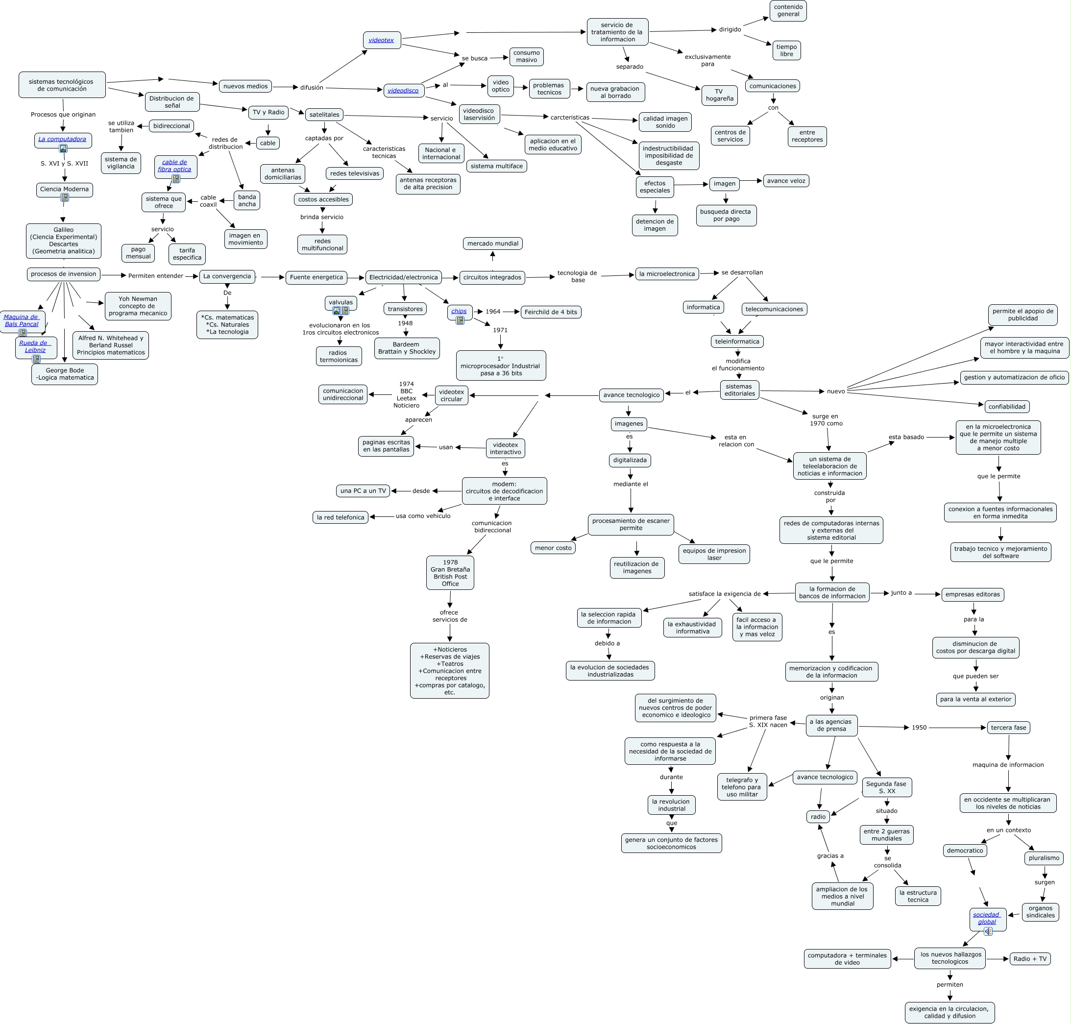 Este Cmap, tiene información relacionada con: tp 3, conexion a fuentes informacionales en forma inmedita trabajo tecnico y mejoramiento del software, la formacion de bancos de informacion es memorizacion y codificacion de la informacion, sistemas tecnológicos de comunicación nuevos medios, la revolucion industrial que genera un conjunto de factores socioeconomicos, organos sindicales ???? sociedad global, redes de computadoras internas y externas del sistema editorial que le permite la formacion de bancos de informacion, sistema que ofrece servicio tarifa especifica, los nuevos hallazgos tecnologicos ???? Radio + TV, imagenes esta en relacion con, procesos de invension Yoh Newman concepto de programa mecanico, cable redes de distribucion bidireccional, modem: circuitos de decodificacion e interface usa como vehiculo la red telefonica, videodisco videodisco laservisión, efectos especiales detencion de imagen, imagenes es digitalizada, TV y Radio cable, videotex servicio de tratamiento de la informacion, sistemas editoriales nuevo gestion y automatizacion de oficio, videodisco se busca consumo masivo, la formacion de bancos de informacion satisface la exigencia de la exhaustividad informativa