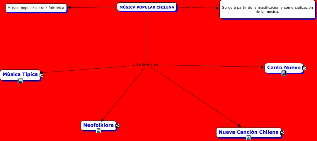 Este Cmap, tiene información relacionada con: Sin Título 2, El golpe de Estado el 11 de septiembre de 1973 debido a esto Los representantes de este movimiento son exilidos y expanden la NCCh por América y Europa, MÚSICA POPULAR CHILENA Se divide en Canto Nuevo, Canto Nuevo Grupos, Principales interpretes ???? Artistas, NEOFOLKLORE Representantes Intérpretes, NEOFOLKLORE Movimiento de renovación de la música, Representantes Intérpretes, Canto Nuevo La primera respuesta musical tras la represion cultural en el gobierno de Pinochet, MÚSICA POPULAR CHILENA Se divide en MÚSICA TÍPICA, Sus principales aportes Obras como "Canto para una semilla" y "La Fragua" son ejemplos del acercamiento con la musica docta Se preferencia el folklore en países andinos Enfatiza la música Chilena y Latinoamericana Introduce ta tematica social en la MPC, MÚSICA POPULAR CHILENA Se divide en NEOFOLKLORE, Canto Nuevo No tiene estilo definido, pero si un tema en común: la oposición al régimen militar, Reacción de un grupo de compositores que están en contra de la Música Típica Chilena ya que La Música Típica Chilena era considerada poco representativa y excluyente, LA NUEVA CANCIÓN CHILENA propone que El principal tema a tratar es la reivindicación de los derechos de los sectores más bajos del país, LA NUEVA CANCIÓN CHILENA ???? Sus principales aportes, LA NUEVA CANCIÓN CHILENA ???? Representantes, LA NUEVA CANCIÓN CHILENA nace como Reacción de un grupo de compositores que están en contra de la Música Típica Chilena, MÚSICA POPULAR CHILENA Música popular de raíz folclórica, NEOFOLKLORE Representantes Compositores destacados • Rolando Alarcón • Ángel e Isabel Parra • Patricio Manns • Willy Bascuñán • Sofanor Tobar • Hernán Álvarez, NEOFOLKLORE Imita al movimiento musical argentino de esa época, que intentaba recatar las raíces indígenas en la música