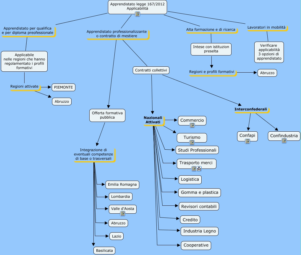 Questa Cmap, creata con IHMC CmapTools, contiene informazioni relative a: Apprendistato_applicabilita, Contratti collettivi Nazionali Attivati Turismo, Contratti collettivi Nazionali Attivati Revisori contabili, Intese con istituzion preselta Regioni e profili formativi Abruzzo, Offerta formativa pubblica Integrazione di eventuali competenze di base o trasversali Lazio, Contratti collettivi Nazionali Attivati Industria Legno, Contratti collettivi Interconfederali Confindustria, Contratti collettivi Nazionali Attivati Commercio, Apprendistato legge 167/2012 Applicabilità Apprendistato professionalizzante o contratto di mestiere Contratti collettivi, Contratti collettivi Nazionali Attivati Trasporto merci, Applicabile nelle regioni che hanno regolamentato i profili formativi Regioni attivate Abruzzo, Apprendistato legge 167/2012 Applicabilità Apprendistato professionalizzante o contratto di mestiere Offerta formativa pubblica, Offerta formativa pubblica Integrazione di eventuali competenze di base o trasversali Basilicata, Contratti collettivi Nazionali Attivati Logistica, Contratti collettivi Nazionali Attivati Gomma e plastica, Offerta formativa pubblica Integrazione di eventuali competenze di base o trasversali Abruzzo, Apprendistato legge 167/2012 Applicabilità Alta formazione e di ricerca Intese con istituzion preselta, Apprendistato legge 167/2012 Applicabilità Apprendistato per qualifica e per diploma preofessionale Applicabile nelle regioni che hanno regolamentato i profili formativi, Apprendistato legge 167/2012 Applicabilità Lavoratori in mobilità Verificare applicabilità 3 opzioni di apprendistato, Applicabile nelle regioni che hanno regolamentato i profili formativi Regioni attivate PIEMONTE, Offerta formativa pubblica Integrazione di eventuali competenze di base o trasversali Emilia Romagna