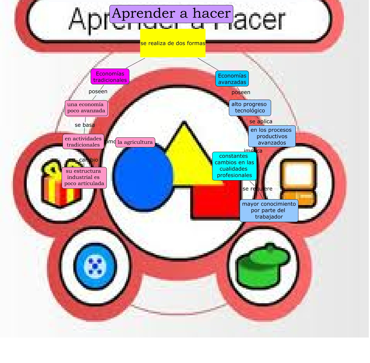 Este Cmap, tiene información relacionada con: aprender a hacer, en actividades tradicionales en cambio su estructura industrial es poco artículada, Economías avanzadas poseen alto progreso tecnológico, Aprender a hacer se realiza de dos formas Economías avanzadas, alto progreso tecnológico se aplica en los procesos productivos avanzados, constantes cambios en las cualidades profesionales se requiere mayor conocimiento por parte del trabajador, una economía poco avanzada se basa en actividades tradicionales, en actividades tradicionales como la agricultura, Economías tradicionales poseen una economía poco avanzada, en los procesos productivos avanzados implica constantes cambios en las cualidades profesionales, Aprender a hacer se realiza de dos formas Economías tradicionales