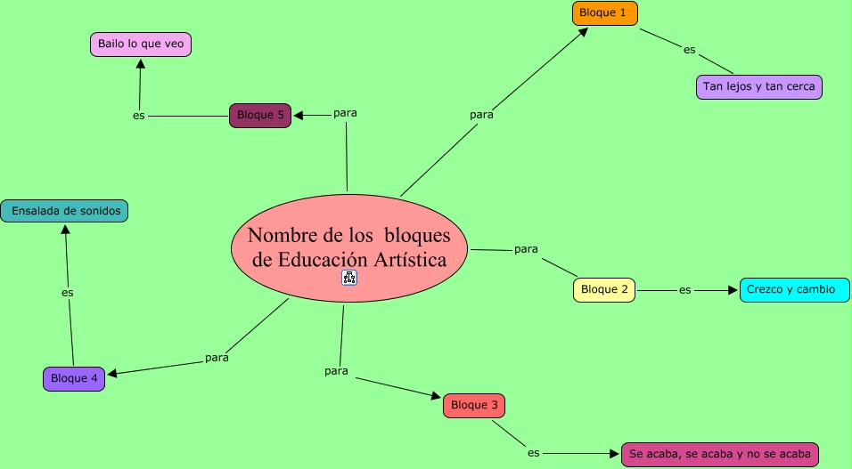 Este Cmap, tiene información relacionada con: nombre de bloques, Bloque 1 es Tan lejos y tan cerca, Nombre de los bloques de Educación Artística para Bloque 1, Nombre de los bloques de Educación Artística para Bloque 2, Nombre de los bloques de Educación Artística para Bloque 4, Nombre de los bloques de Educación Artística para Bloque 3, Bloque 4 es Ensalada de sonidos, Nombre de los bloques de Educación Artística para Bloque 5, Bloque 2 es Crezco y cambio, Bloque 3 es Se acaba, se acaba y no se acaba, Bloque 5 es Bailo lo que veo