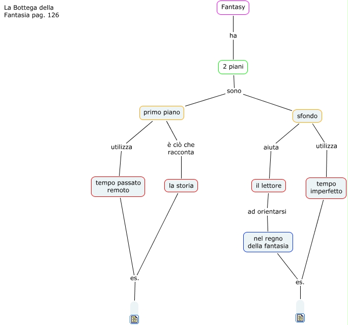 Questa Cmap, creata con IHMC CmapTools, contiene informazioni relative a: Il fantasy-1° piano e sfondo, sfondo utilizza tempo imperfetto, tempo passato remoto es., primo piano utilizza tempo passato remoto, 2 piani sono primo piano, primo piano è ciò che racconta la storia, il lettore ad orientarsi nel regno della fantasia, 2 piani sono sfondo, Fantasy ha 2 piani, la storia es., nel regno della fantasia es., sfondo aiuta il lettore, tempo imperfetto es.
