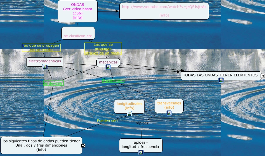 This Concept Map, created with IHMC CmapTools, has information related to: nurit mass cmap, TREN (info) pueden ser ARMONICAS (info), se clasifican en: Las que se propagan atravez de un medio mecanicas, mecanicas se derivan TREN (info), TREN (info) pueden ser VIAJERAS (info), electromagenticas se derivan TREN (info), electromagenticas Pueden ser: lonigitudinales (info), ELEMENTOS amplitud (info), ONDAS (ver video hasta 1:56) [info] ???? se clasifican en:, ELEMENTOS Periodo (info), transversales (info) Pueden ser: los siguientes tipos de ondas pueden tiener Una , dos y tres dimenciones (info), mecanicas TODAS LAS ONDAS TIENEN ELEMTENTOS, electromagenticas TODAS LAS ONDAS TIENEN ELEMTENTOS, electromagenticas Pueden ser: transversales (info), mecanicas Pueden ser: transversales (info), se clasifican en: Las que se propagan sin un medio electromagenticas, transversales (info) rapidez rapidez= longitud x frecuencia, mecanicas Pueden ser: lonigitudinales (info), ONDAS (ver video hasta 1:56) [info] ???? http://www.youtube.com/watch?v=jzQSJsjtrAk [info], PULSO (info) salen PERDIODICAS (info), ELEMENTOS longitud (info)