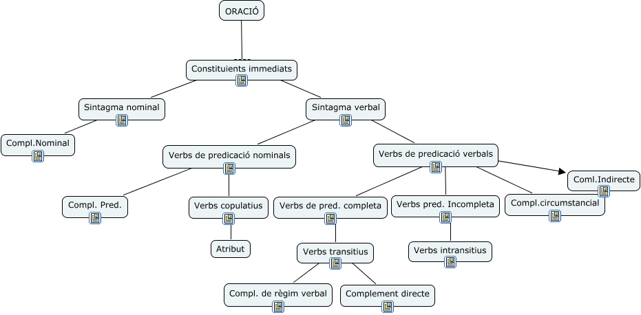 This Concept Map, created with IHMC CmapTools, has information related to: CMAPS SINTAXIS, Sintagma verbal ???? Verbs de predicació verbals, Verbs transitius ???? Complement directe, Verbs de predicació nominals ???? Compl. Pred., Verbs pred. Incompleta ???? Verbs intransitius, Verbs de predicació verbals ???? Verbs de pred. completa, Verbs de predicació verbals ???? Verbs pred. Incompleta, Verbs copulatius ???? Atribut, Verbs transitius ???? Compl. de règim verbal, Sintagma verbal ???? Verbs de predicació nominals, ORACIÓ ???? Constituients immediats, Verbs de predicació verbals ???? Compl.circumstancial, Sintagma nominal ???? Compl.Nominal, Verbs de predicació verbals ???? Coml.Indirecte, Constituients immediats ???? Sintagma verbal, Verbs de pred. completa ???? Verbs transitius, Constituients immediats ???? Sintagma nominal, Verbs de predicació nominals ???? Verbs copulatius