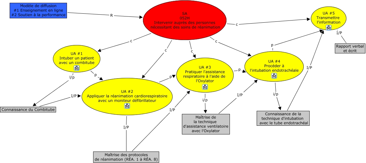 Cette carte de concepts créée avec IHMC CmapTools traite de: Réa 2, SA 052H Intervenir auprès des personnes nécessitant des soins de réanimation c UA #5 Transmettre l'information, Maîtrise de la technique d'assistance ventilatoire avec l'Oxylator I/P UA #4 Procéder à l'intubation endotrachéale, SA 052H Intervenir auprès des personnes nécessitant des soins de réanimation c UA #1 Intuber un patient avec un combitube, SA 052H Intervenir auprès des personnes nécessitant des soins de réanimation c UA #2 Appliquer la réanimation cardiorespiratoire avec un moniteur défibrillateur, UA #1 Intuber un patient avec un combitube p UA #2 Appliquer la réanimation cardiorespiratoire avec un moniteur défibrillateur, Modèle de diffusion #1 Enseignement en ligne #2 Soutien à la performance R SA 052H Intervenir auprès des personnes nécessitant des soins de réanimation, SA 052H Intervenir auprès des personnes nécessitant des soins de réanimation c UA #4 Procéder à l'intubation endotrachéale, UA #4 Procéder à l'intubation endotrachéale p UA #5 Transmettre l'information, UA #2 Appliquer la réanimation cardiorespiratoire avec un moniteur défibrillateur p UA #3 Pratiquer l'assistance respiratoire à l'aide de l'Oxylator, Maîtrise des protocoles de réanimation (RÉA. 1 à RÉA. 8) I/P UA #3 Pratiquer l'assistance respiratoire à l'aide de l'Oxylator, SA 052H Intervenir auprès des personnes nécessitant des soins de réanimation c UA #3 Pratiquer l'assistance respiratoire à l'aide de l'Oxylator, UA #3 Pratiquer l'assistance respiratoire à l'aide de l'Oxylator p UA #4 Procéder à l'intubation endotrachéale, UA #2 Appliquer la réanimation cardiorespiratoire avec un moniteur défibrillateur I/P Maîtrise des protocoles de réanimation (RÉA. 1 à RÉA. 8), UA #1 Intuber un patient avec un combitube l/p Connaissance du Combitube, UA #4 Procéder à l'intubation endotrachéale i/p Connaissance de la technique d'intubation avec le tube endotrachéal, UA #5 Transmettre l'information I/P Rapport verbal et écrit, Connaissance du Combitube I/P UA #2 Appliquer la réanimation cardiorespiratoire avec un moniteur défibrillateur, UA #3 Pratiquer l'assistance respiratoire à l'aide de l'Oxylator i/p Maîtrise de la technique d'assistance ventilatoire avec l'Oxylator, Connaissance de la technique d'intubation avec le tube endotrachéal I/P UA #5 Transmettre l'information