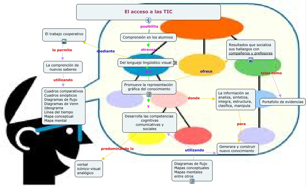 Este Cmap, tiene información relacionada con: Organizadores Graficos, Estrategias como Luvia de ideas Guía de estudio Descripción de un informe Síntesis de ideas centrales etc., El acceso a las TIC posibilita Comprensión en los alumnos, Del lenguaje lingüistíco visual utilizando Estrategias, Del lenguaje lingüistíco visual mediante El trabajo cooperativo, La comprención de nuevos saberes utilizando Cuadros comparativos Cuadros sinópticos Diagramas de flujo Diagramas de Venn Ideograma Línea del tiempo Mapa conceptual Mapa mental, Resultados que socializa sus hallazgos con compañeros y prefesores tales como Portafolio de evidencias, Comprensión en los alumnos atravez Del lenguaje lingüistíco visual, Promueve la representación gráfica del conocimiento ofrece Resultados que socializa sus hallazgos con compañeros y prefesores, Desarrolla las competencias cognitivas comunicativas y sociales predominando lo verbal icónico-visual analógico, Promueve la representación gráfica del conocimiento y Desarrolla las competencias cognitivas comunicativas y sociales, La información se analiza, sintetiza, integra, estructura, clasifica, manipula para Generara y construir nuevo conocimiento, El trabajo cooperativo le permite La comprención de nuevos saberes, Diagramas de flujo Mapas conceptuales Mapas mentales entre otros utilizando Generara y construir nuevo conocimiento, Diagramas de flujo Mapas conceptuales Mapas mentales entre otros utilizando Desarrolla las competencias cognitivas comunicativas y sociales, Del lenguaje lingüistíco visual que Promueve la representación gráfica del conocimiento, Promueve la representación gráfica del conocimiento donde La información se analiza, sintetiza, integra, estructura, clasifica, manipula