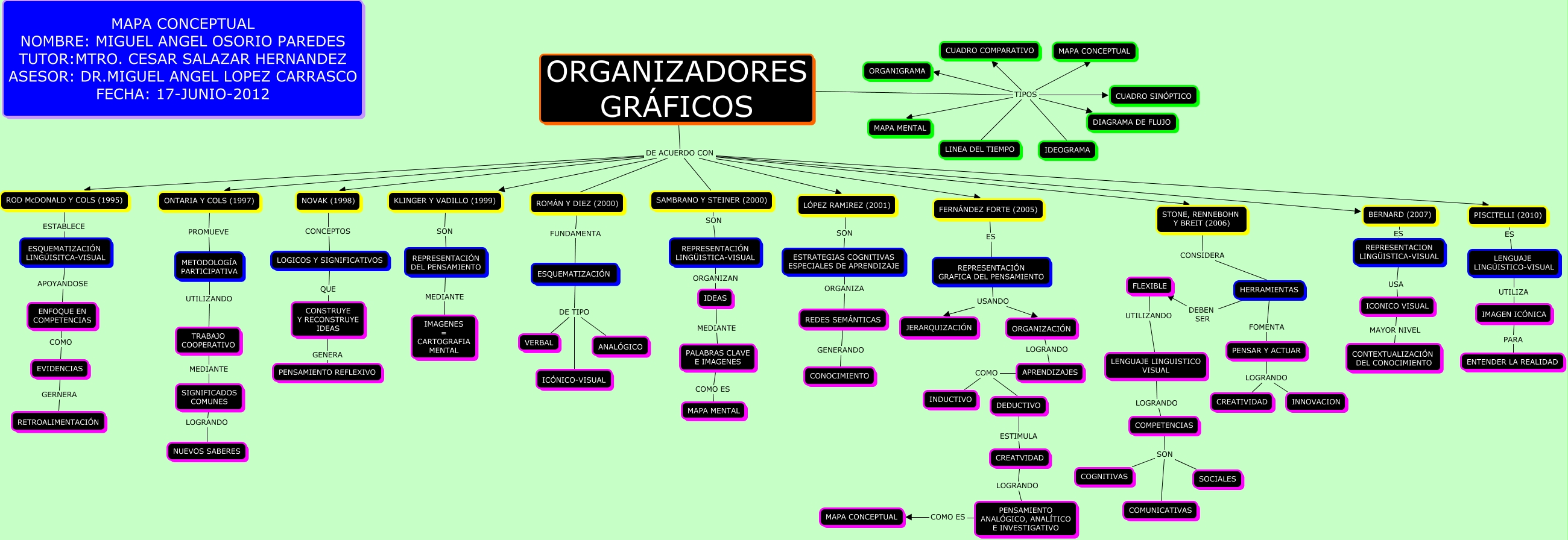 Este Cmap, tiene información relacionada con: MIGUEL_OSORIO, IMAGEN ICÓNICA PARA ENTENDER LA REALIDAD, COMPETENCIAS SON COGNITIVAS, LENGUAJE LINGUISTICO VISUAL LOGRANDO COMPETENCIAS, ESQUEMATIZACIÓN DE TIPO ANALÓGICO, ORGANIZADORES GRÁFICOS DE ACUERDO CON SAMBRANO Y STEINER (2000), APRENDIZAJES COMO DEDUCTIVO, PENSAR Y ACTUAR LOGRANDO INNOVACION, APRENDIZAJES COMO INDUCTIVO, DEDUCTIVO ESTIMULA CREATVIDAD, PISCITELLI (2010) ES LENGUAJE LINGÜISTICO-VISUAL, ORGANIZADORES GRÁFICOS DE ACUERDO CON NOVAK (1998), FERNÁNDEZ FORTE (2005) ES REPRESENTACIÓN GRAFICA DEL PENSAMIENTO, HERRAMIENTAS FOMENTA PENSAR Y ACTUAR, ORGANIZADORES GRÁFICOS TIPOS CUADRO SINÓPTICO, ORGANIZADORES GRÁFICOS DE ACUERDO CON PISCITELLI (2010), REPRESENTACIÓN DEL PENSAMIENTO MEDIANTE IMAGENES = CARTOGRAFIA MENTAL, FLEXIBLE UTILIZANDO LENGUAJE LINGUISTICO VISUAL, ORGANIZADORES GRÁFICOS TIPOS CUADRO COMPARATIVO, ORGANIZADORES GRÁFICOS TIPOS LINEA DEL TIEMPO, HERRAMIENTAS DEBEN SER FLEXIBLE