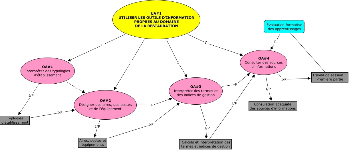 Cette carte de concepts créée avec IHMC CmapTools traite de: UA1, OA#4 Consulter des sources d'informations I/P Consulation adéquate des sources d'informations, Évaluation formative des apprentissages ???? Travail de session : Première partie, Calculs et interprétation des termes et indices de gestion I/P OA#4 Consulter des sources d'informations, OA#2 Désigner des aires, des postes et de l'équipement I/P Aires, postes et équipements, UA#1 UTILISER LES OUTILS D'INFORMATION PROPRES AU DOMAINE DE LA RESTAURATION C OA#4 Consulter des sources d'informations, UA#1 UTILISER LES OUTILS D'INFORMATION PROPRES AU DOMAINE DE LA RESTAURATION C OA#2 Désigner des aires, des postes et de l'équipement, OA#2 Désigner des aires, des postes et de l'équipement P OA#3 Interpréter des termes et des indices de gestion, OA#1 Interpréter des typologies d'établissement P OA#2 Désigner des aires, des postes et de l'équipement, Évaluation formative des apprentissages R OA#4 Consulter des sources d'informations, OA#1 Interpréter des typologies d'établissement I/P Typlogies d'établissement, UA#1 UTILISER LES OUTILS D'INFORMATION PROPRES AU DOMAINE DE LA RESTAURATION C OA#1 Interpréter des typologies d'établissement, UA#1 UTILISER LES OUTILS D'INFORMATION PROPRES AU DOMAINE DE LA RESTAURATION C OA#3 Interpréter des termes et des indices de gestion, OA#3 Interpréter des termes et des indices de gestion I/P Calculs et interprétation des termes et indices de gestion, OA#4 Consulter des sources d'informations I/P Travail de session : Première partie, Typlogies d'établissement I/P OA#2 Désigner des aires, des postes et de l'équipement, OA#3 Interpréter des termes et des indices de gestion P OA#4 Consulter des sources d'informations, Aires, postes et équipements I/P OA#3 Interpréter des termes et des indices de gestion
