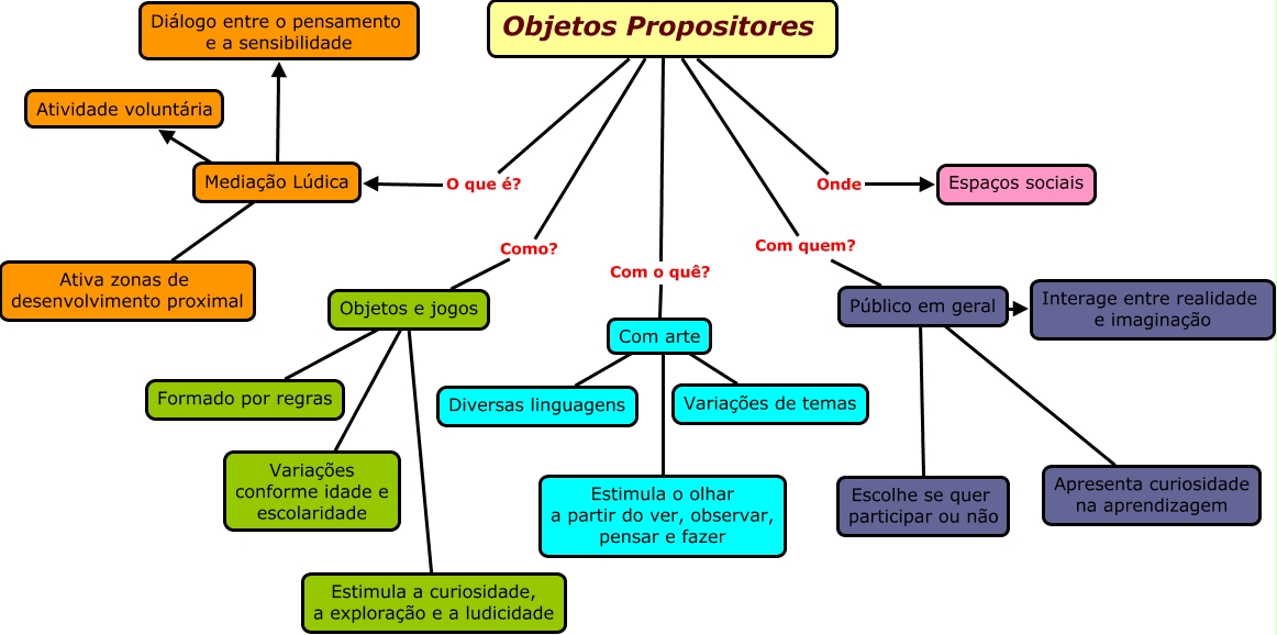 Esse mapa conceitual, produzido no IHMC CmapTools, tem a informação relacionada a: Objetos_Propositores, Com arte ???? Estimula o olhar a partir do ver, observar, pensar e fazer, Com arte ???? Diversas linguagens, Público em geral ???? Apresenta curiosidade na aprendizagem, Mediação Lúdica ???? Diálogo entre o pensamento e a sensibilidade, Objetos e jogos ???? Formado por regras, Objetos e jogos ???? Variações conforme idade e escolaridade, Mediação Lúdica ???? Atividade voluntária, Mediação Lúdica ???? Ativa zonas de desenvolvimento proximal, Objetos Propositores Onde Espaços sociais, Com arte ???? Variações de temas, Público em geral ???? Escolhe se quer participar ou não, Objetos e jogos ???? Estimula a curiosidade, a exploração e a ludicidade, Público em geral ???? Interage entre realidade e imaginação, Objetos Propositores Com quem? Público em geral, Objetos Propositores Com o quê? Com arte, Objetos Propositores Como? Objetos e jogos, Objetos Propositores O que é? Mediação Lúdica