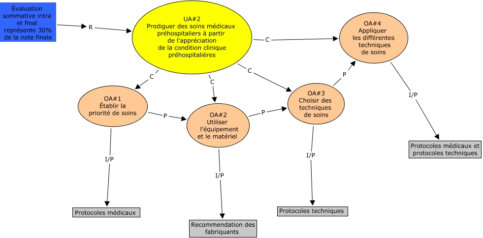 Cette carte de concepts créée avec IHMC CmapTools traite de: Ua2, UA#2 Prodiguer des soins médicaux préhospitaliers à partir de l'appréciation de la condition clinique préhospitalières C OA#2 Utiliser l'équipement et le matériel, UA#2 Prodiguer des soins médicaux préhospitaliers à partir de l'appréciation de la condition clinique préhospitalières C OA#1 Établir la priorité de soins, Évaluation sommative intra et final représente 30% de la note finale R UA#2 Prodiguer des soins médicaux préhospitaliers à partir de l'appréciation de la condition clinique préhospitalières, OA#3 Choisir des techniques de soins I/P Protocoles techniques, OA#1 Établir la priorité de soins I/P Protocoles médicaux, OA#2 Utiliser l'équipement et le matériel P OA#3 Choisir des techniques de soins, OA#1 Établir la priorité de soins P OA#2 Utiliser l'équipement et le matériel, OA#3 Choisir des techniques de soins P OA#4 Appliquer les différentes techniques de soins, OA#2 Utiliser l'équipement et le matériel I/P Recommendation des fabriquants, OA#4 Appliquer les différentes techniques de soins I/P Protocoles médicaux et protocoles techniques, UA#2 Prodiguer des soins médicaux préhospitaliers à partir de l'appréciation de la condition clinique préhospitalières C OA#3 Choisir des techniques de soins, UA#2 Prodiguer des soins médicaux préhospitaliers à partir de l'appréciation de la condition clinique préhospitalières C OA#4 Appliquer les différentes techniques de soins